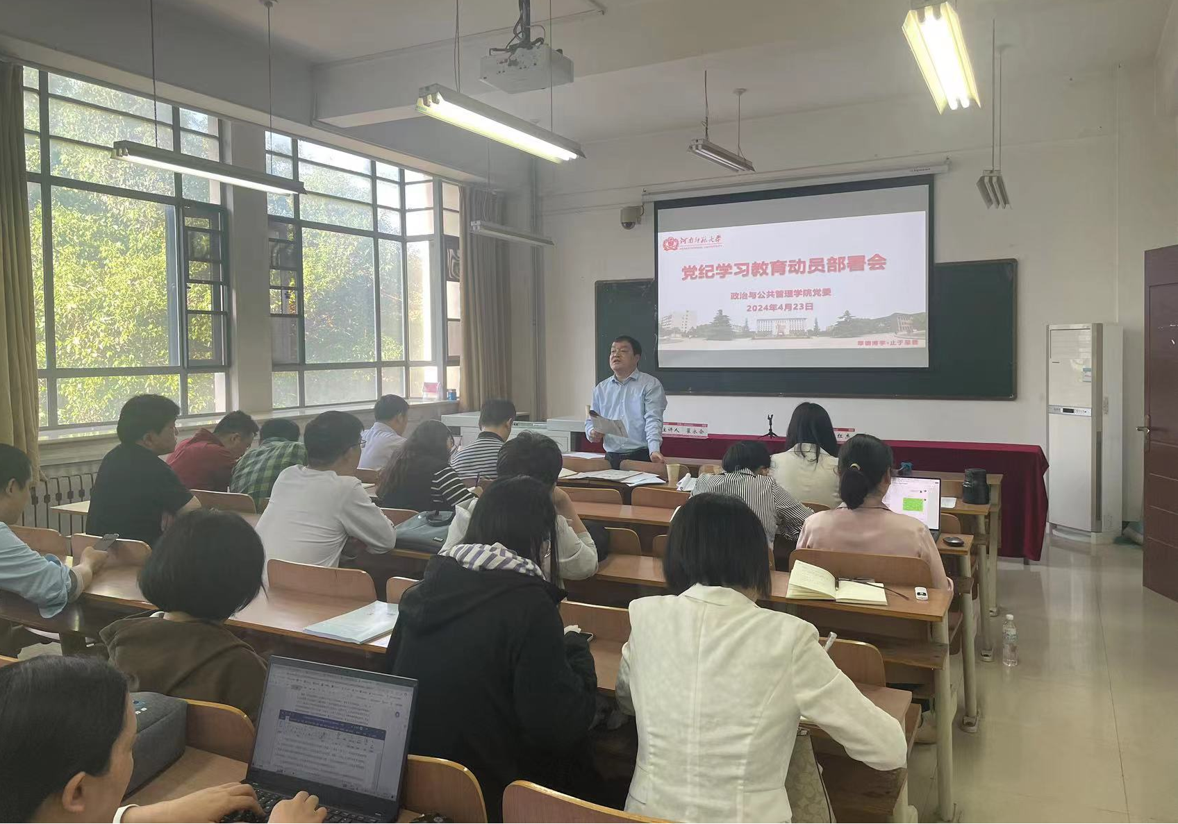 4月23日下午,政治与公共管理学院在217会议室召开党纪学习教育动员部署会。学院班子成员、全体教师党员参加会议。会议由学院党委书记赵红杰主持。
