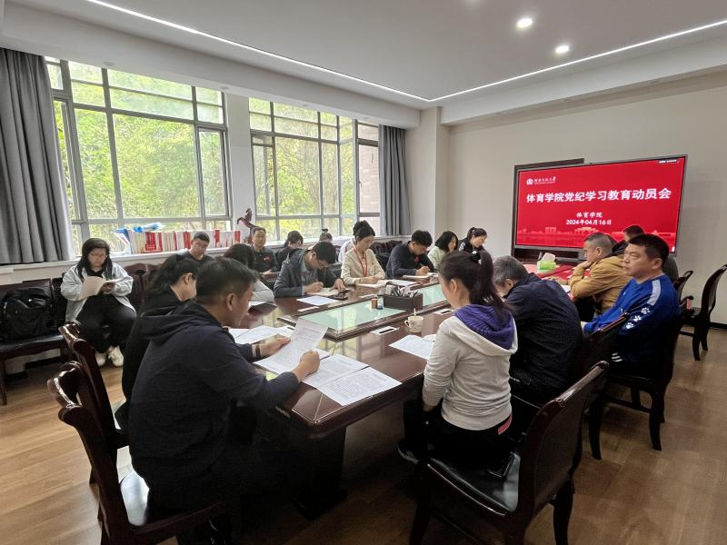 为深入学习贯彻习近平总书记关于党纪学习教育的重要讲话和重要指示精神,落实学校党纪学习教育动员会的部署要求,4月16日上午,体育学院在学院东区214会议室召开党纪学习教育动员会。校党委第二巡察组成员列席会议,体育学院全体在校班子成员、全体党支部书记参加会议。会议由院党委书记王允主持。