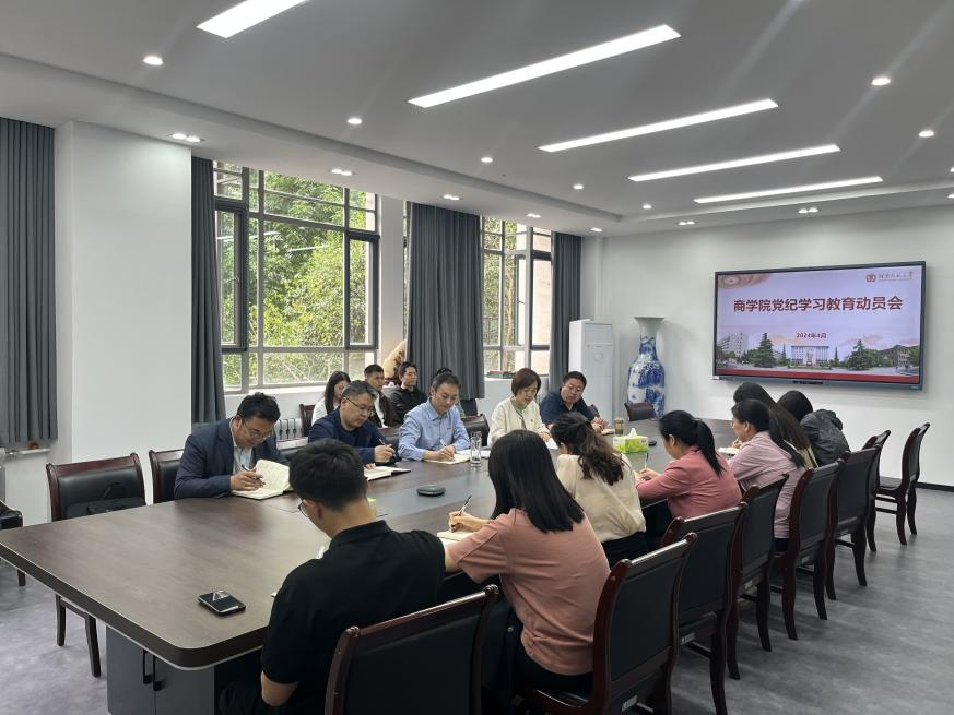 4月16日下午,商学院在学院224会议室召开党纪学习教育动员会。学院党政领导班子成员、全体党支部书记和党员代表参加了会议。会议由院党委副书记马淑明主持。