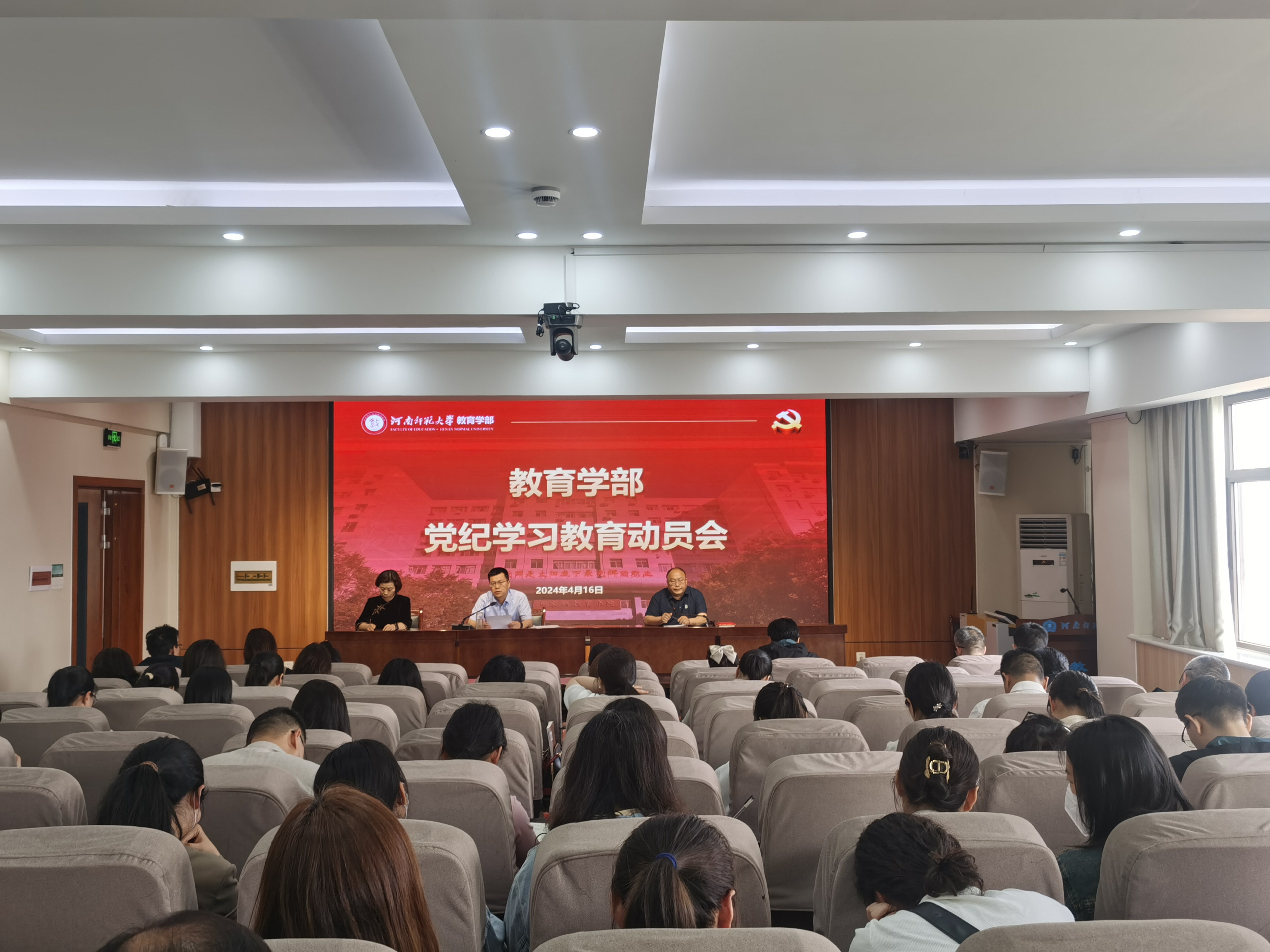 4月16日下午,教育学部在田家炳教育书院819会议室召开党纪学习教育动员会。学部全体党政领导班子成员、各党支部书记、全体教工党员、学生党员代表参加会议。会议由学部党委书记陈勇主持。