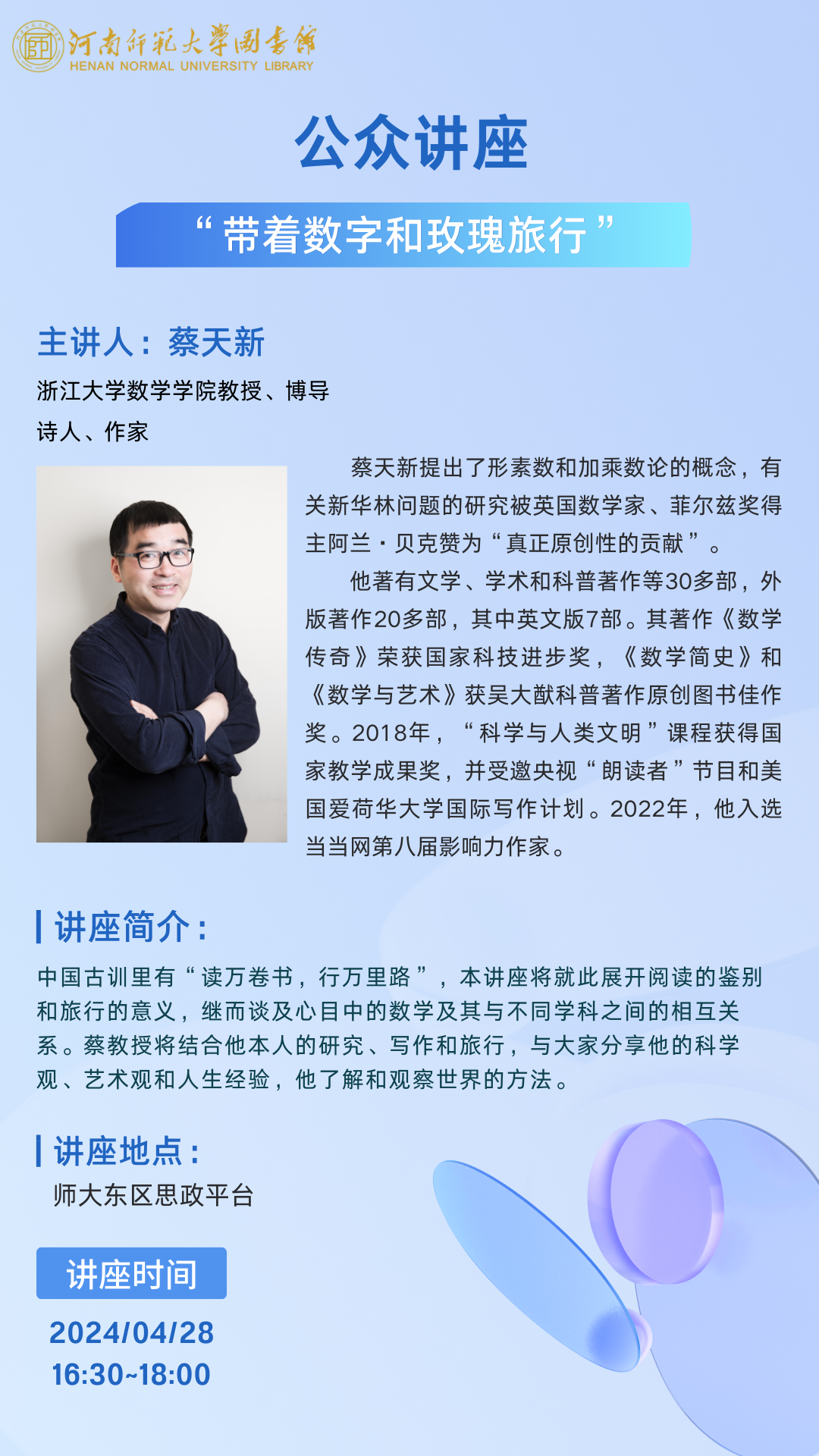 浙江大学蔡天新教授将应邀做客图书与档案信息中心