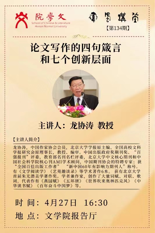 北京大学龙协涛教授将应邀做客“卫风讲堂”