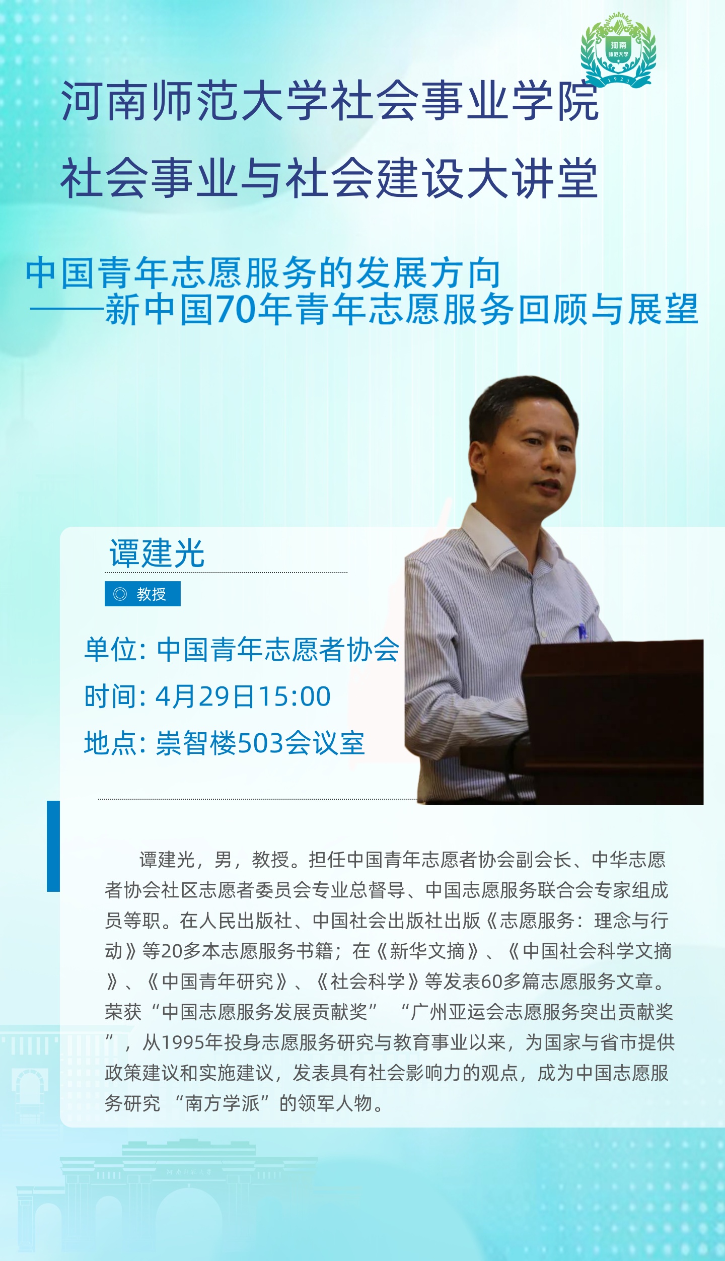 中国青年志愿者协会谭建光教授将应邀做客社会事业与社会建设大讲堂