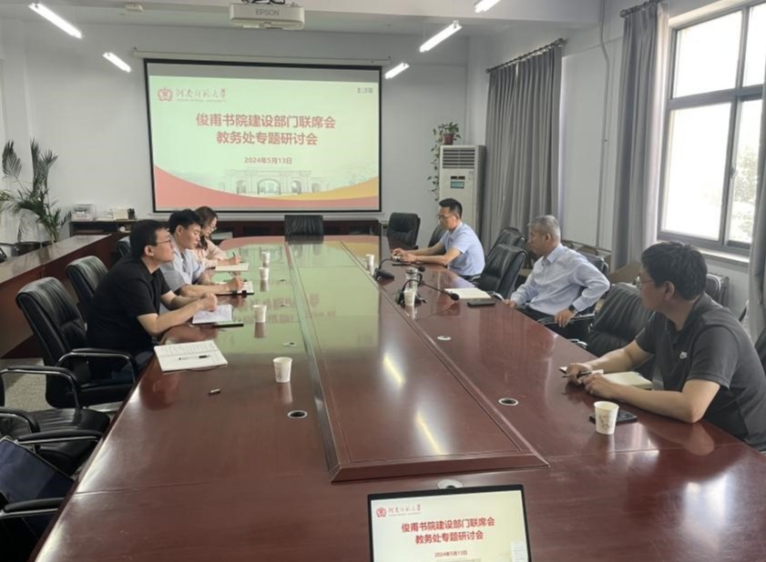 为贯彻落实“俊甫书院建设工作推进会暨运行模式优化升级启动会”的会议精神,快速推进拔尖创新人才培养方案制定、通识课程建设、相关配套政策制定等工作,5月13日上午,俊甫书院班子成员到教务处开展专题调研,教务处班子成员参加调研会。