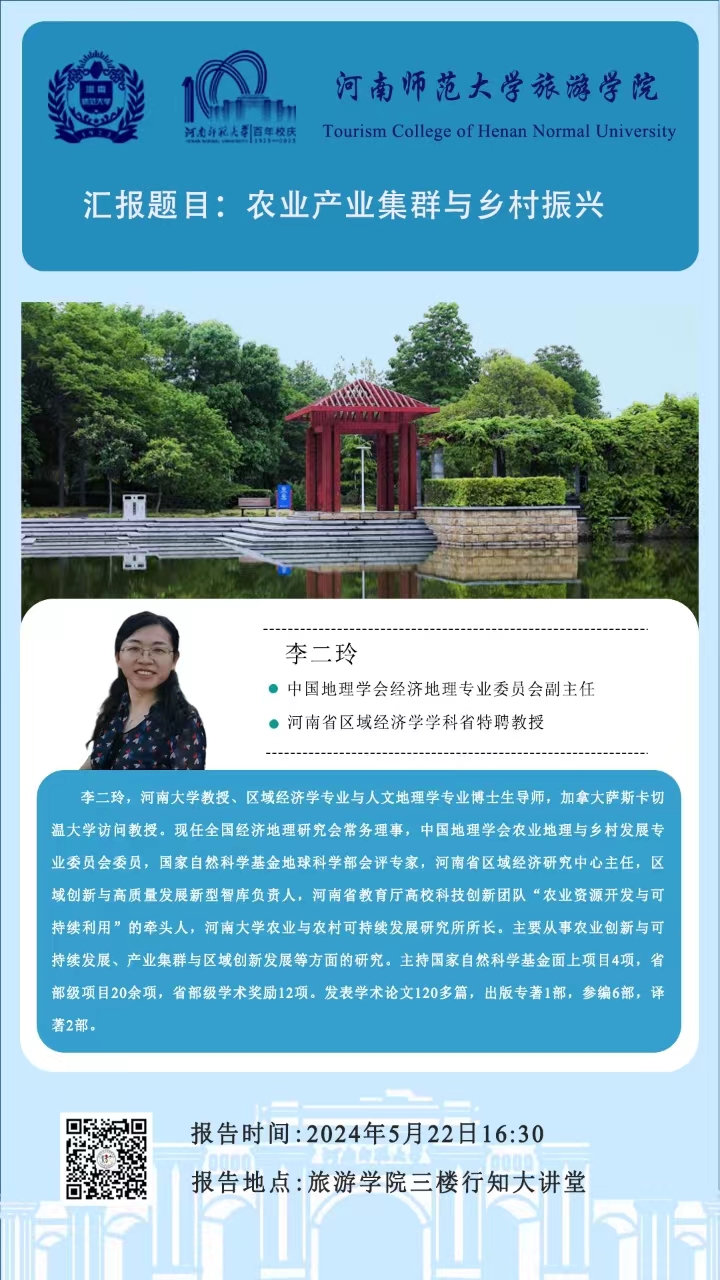 河南大学李二玲教授将应邀做客高端专家行知讲坛