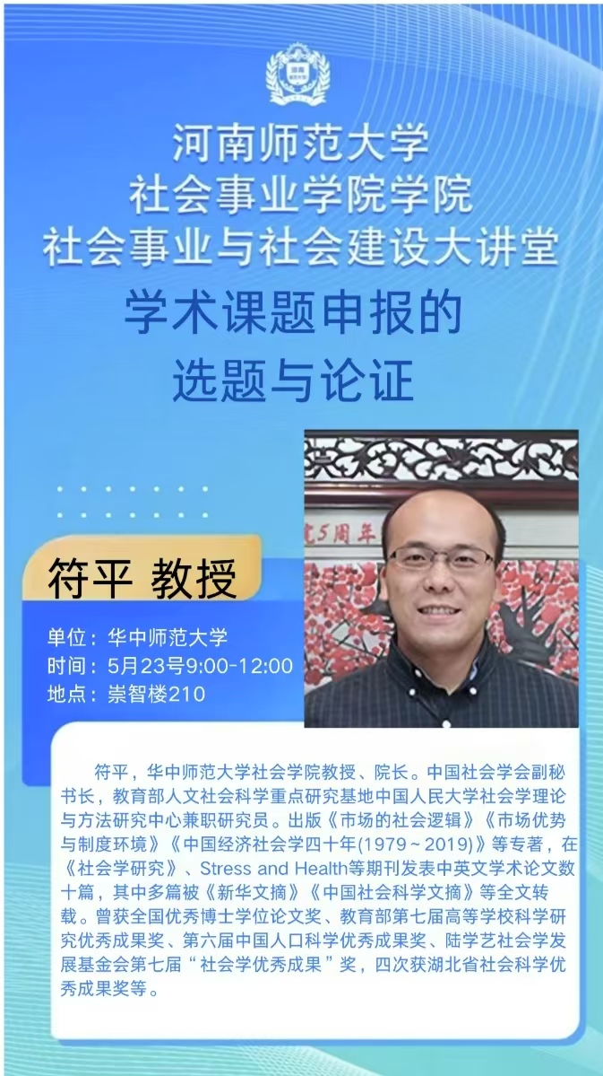 华中师范大学符平教授将应邀做客“社会事业与社会建设大讲堂”