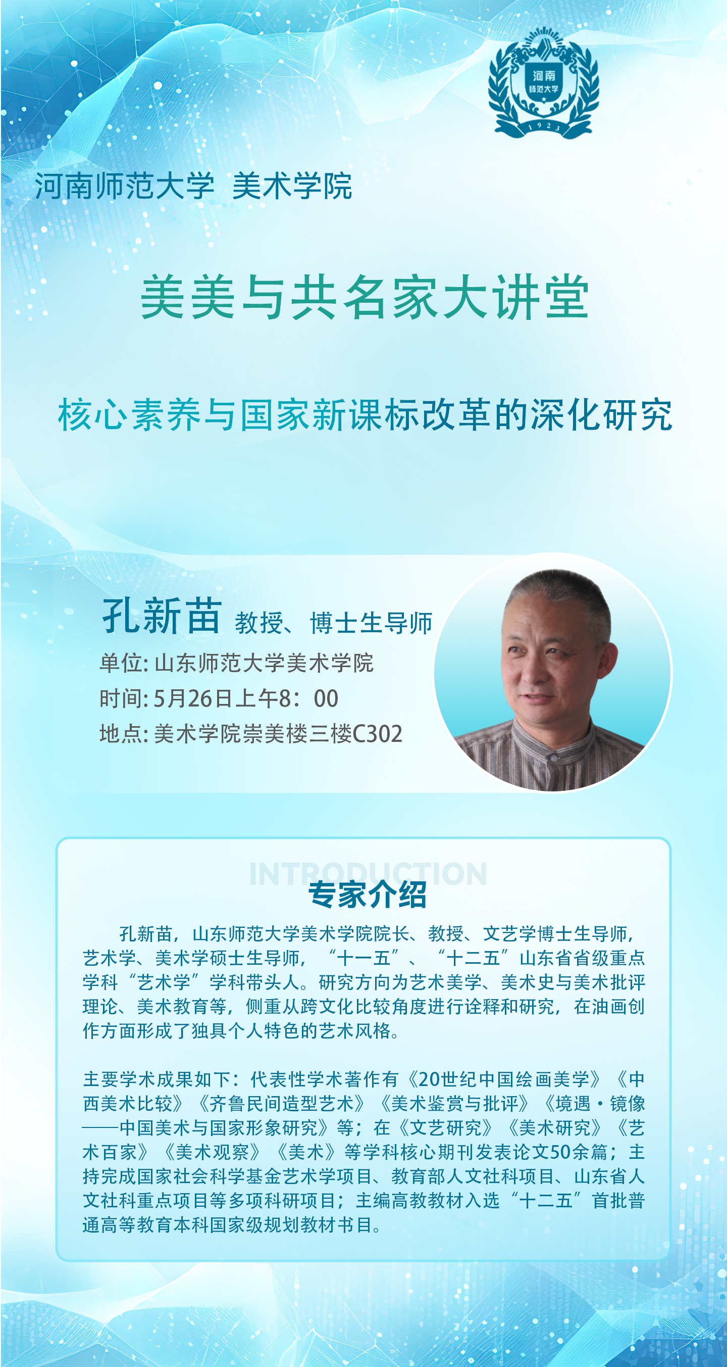 山东师范大学美术学院孔新苗教授将应邀做客美美与共名家大讲堂