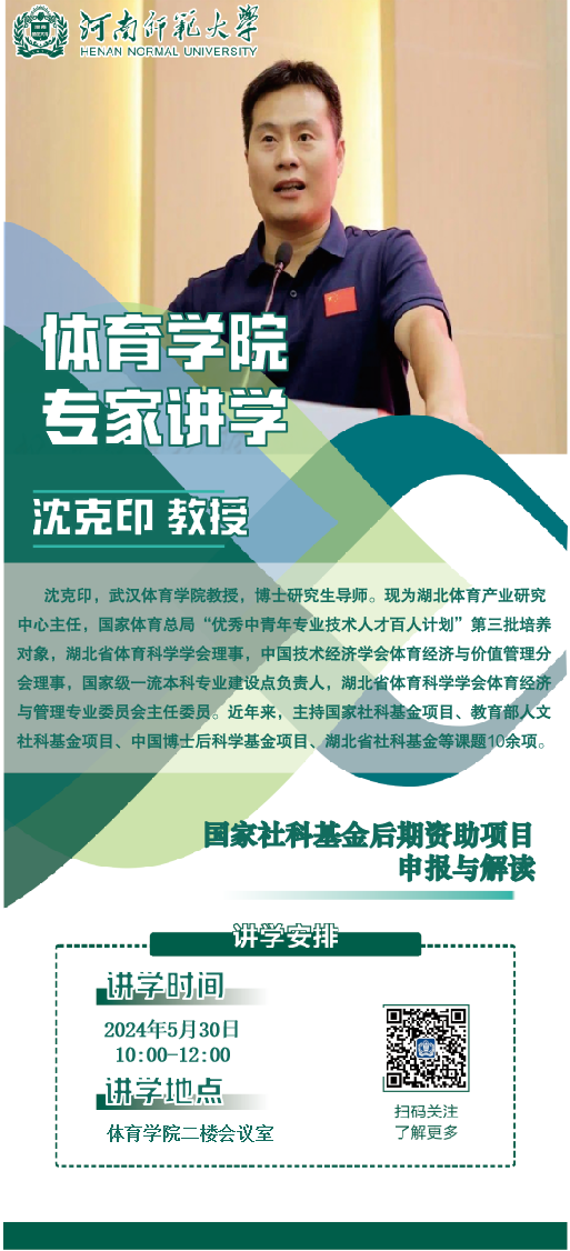 武汉体育学院沈克印教授将应邀做客“体育博雅论坛”