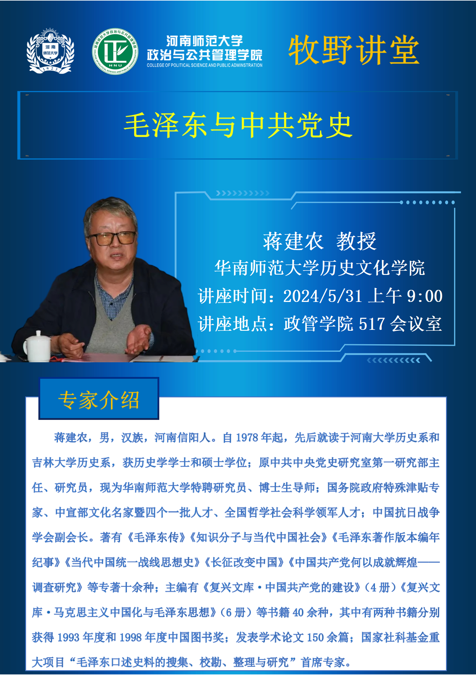 华南师范大学蒋建农教授将应邀做客“牧野讲堂”