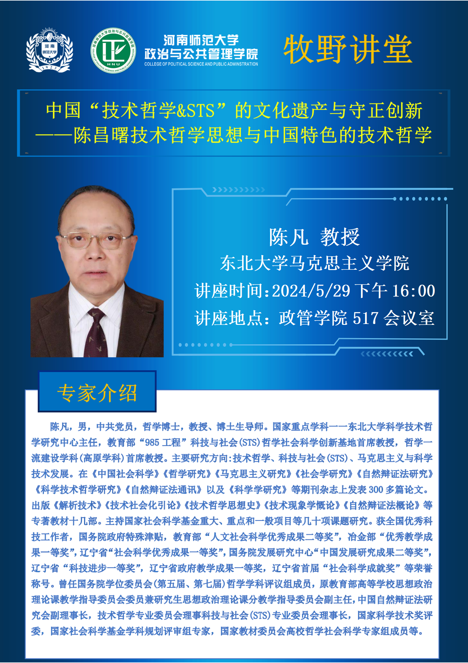 东北大学陈凡教授将应邀做客“牧野讲堂”
