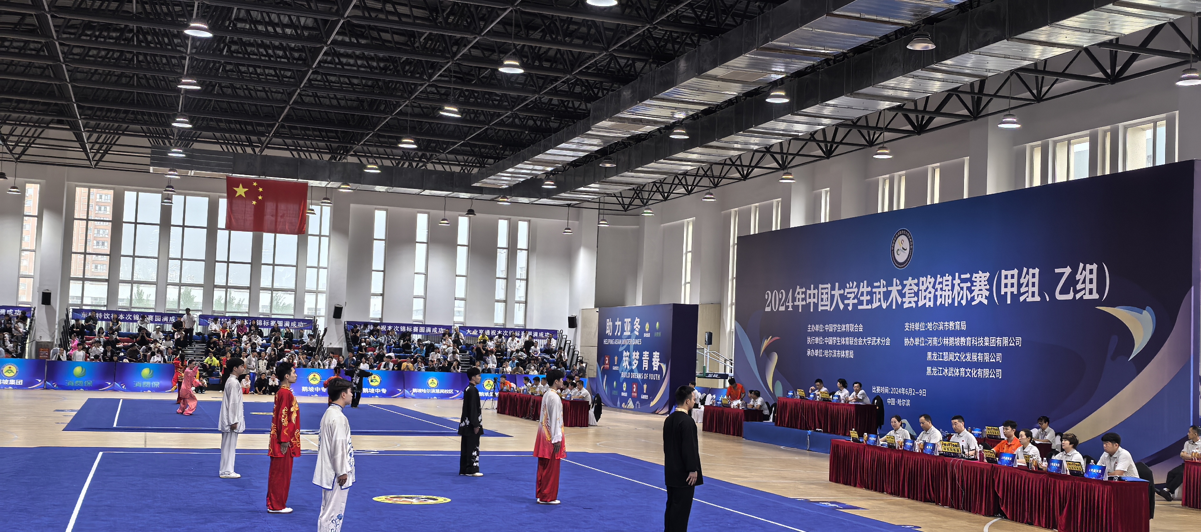 2024年中国大学生武术套路锦标赛于6月4日至9日在哈尔滨华德学院体育馆正式开赛,我校代表队取得2金3铜的优异成绩,这是我校武术项目首次在全国比赛中获得冠军。