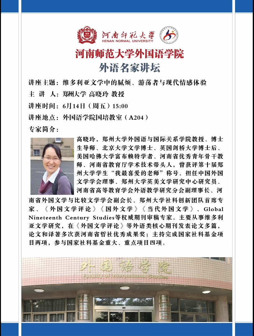 郑州大学高晓玲教授将应邀做客“外语名家讲坛”