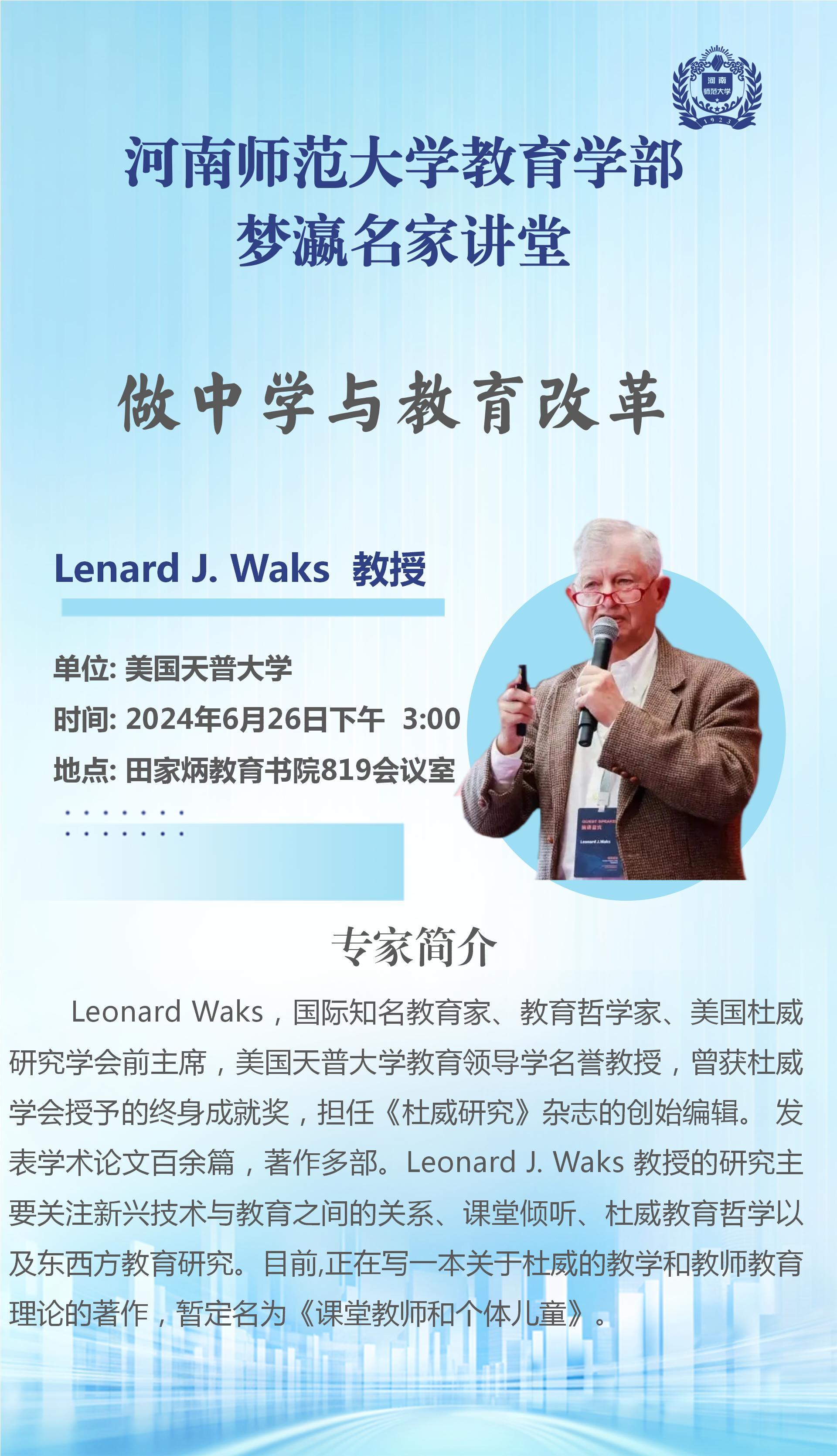 美国天普大学Lenard J.Waks教授将应邀做客“梦瀛名家讲堂”