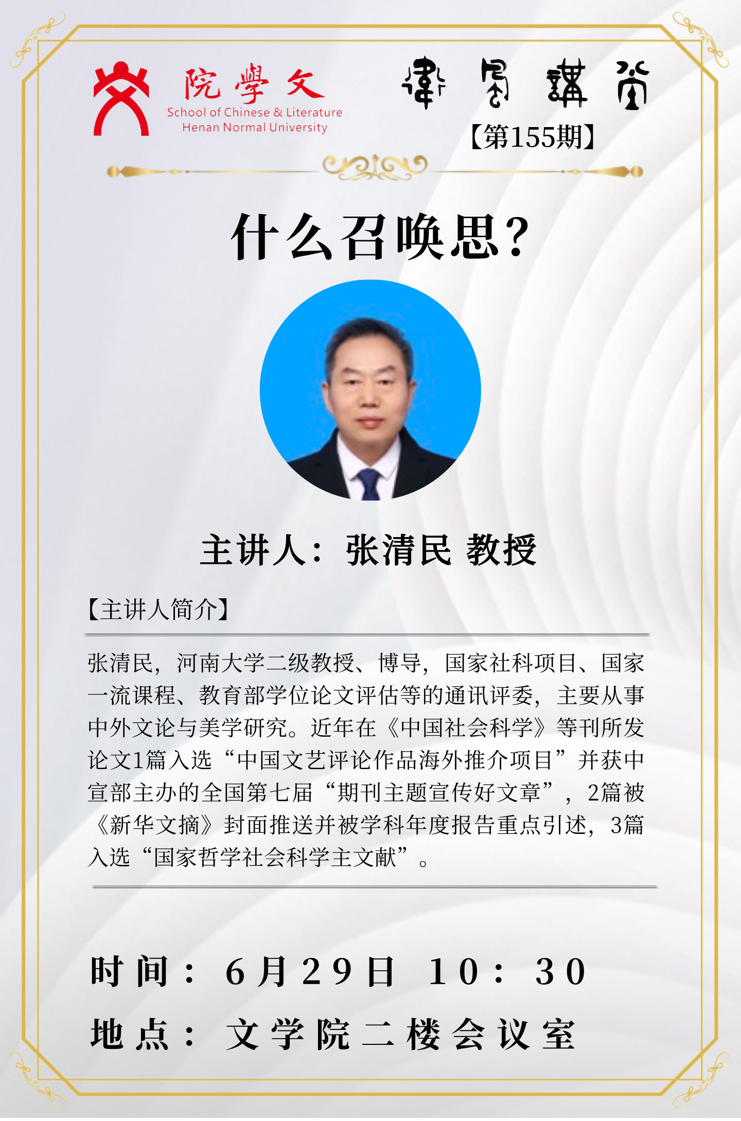 河南大学张清民教授将应邀做客“卫风讲堂”