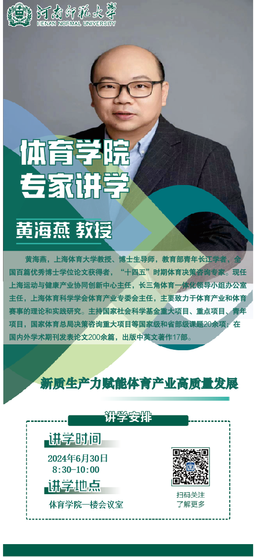 上海体育大学黄海燕教授将应邀做客体育博雅论坛