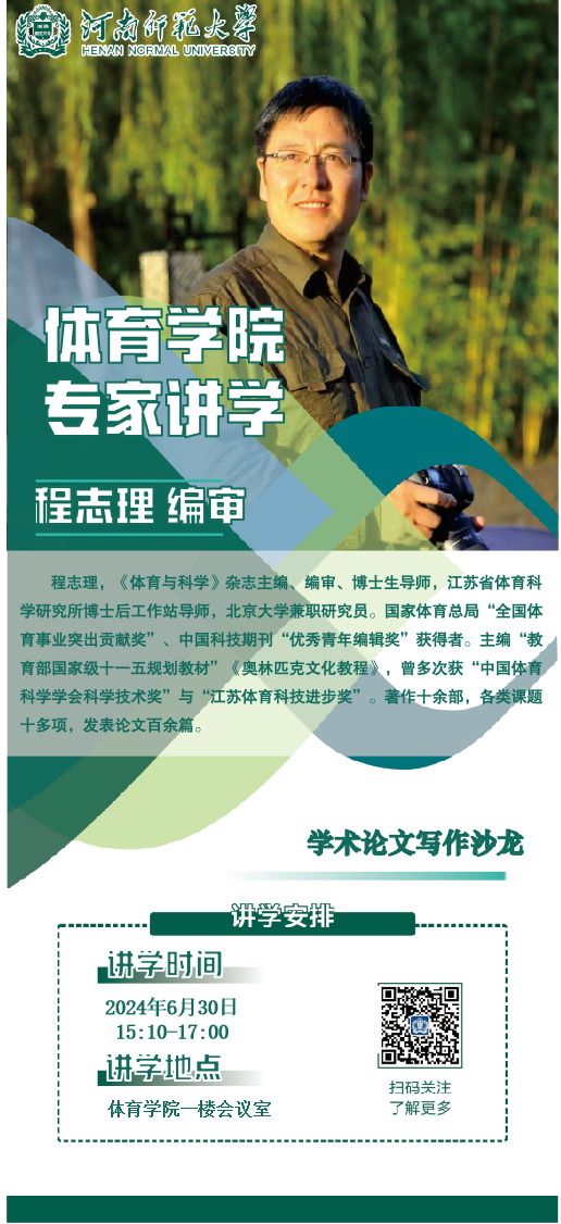 《体育与科学》杂志程志理编审将应邀做客体育博雅论坛