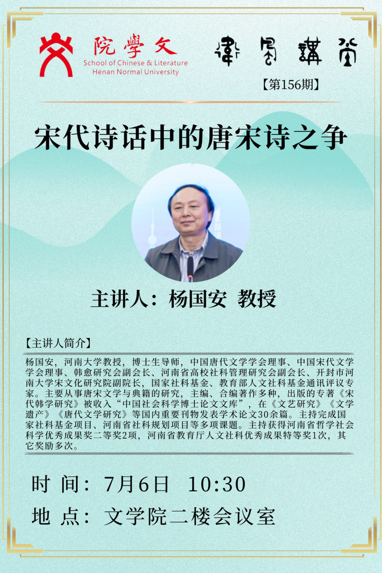 河南大学杨国安教授将应邀做客“卫风讲堂”