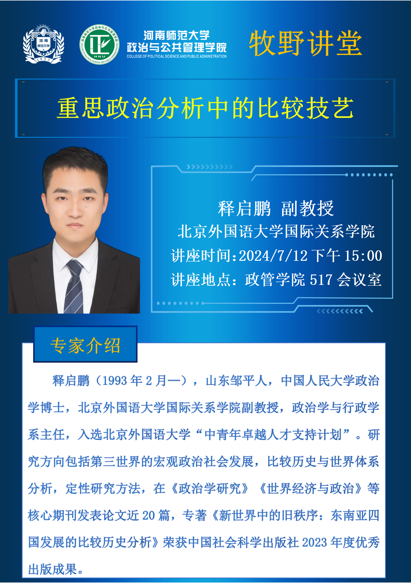 北京外国语大学释启鹏副教授将应邀做客“牧野讲堂”