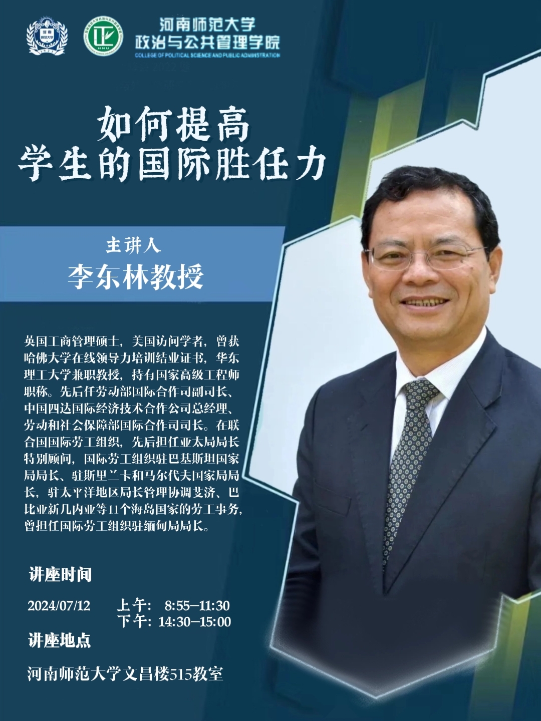 华东理工大学李东林教授将应邀做客牧野讲堂·博雅论坛