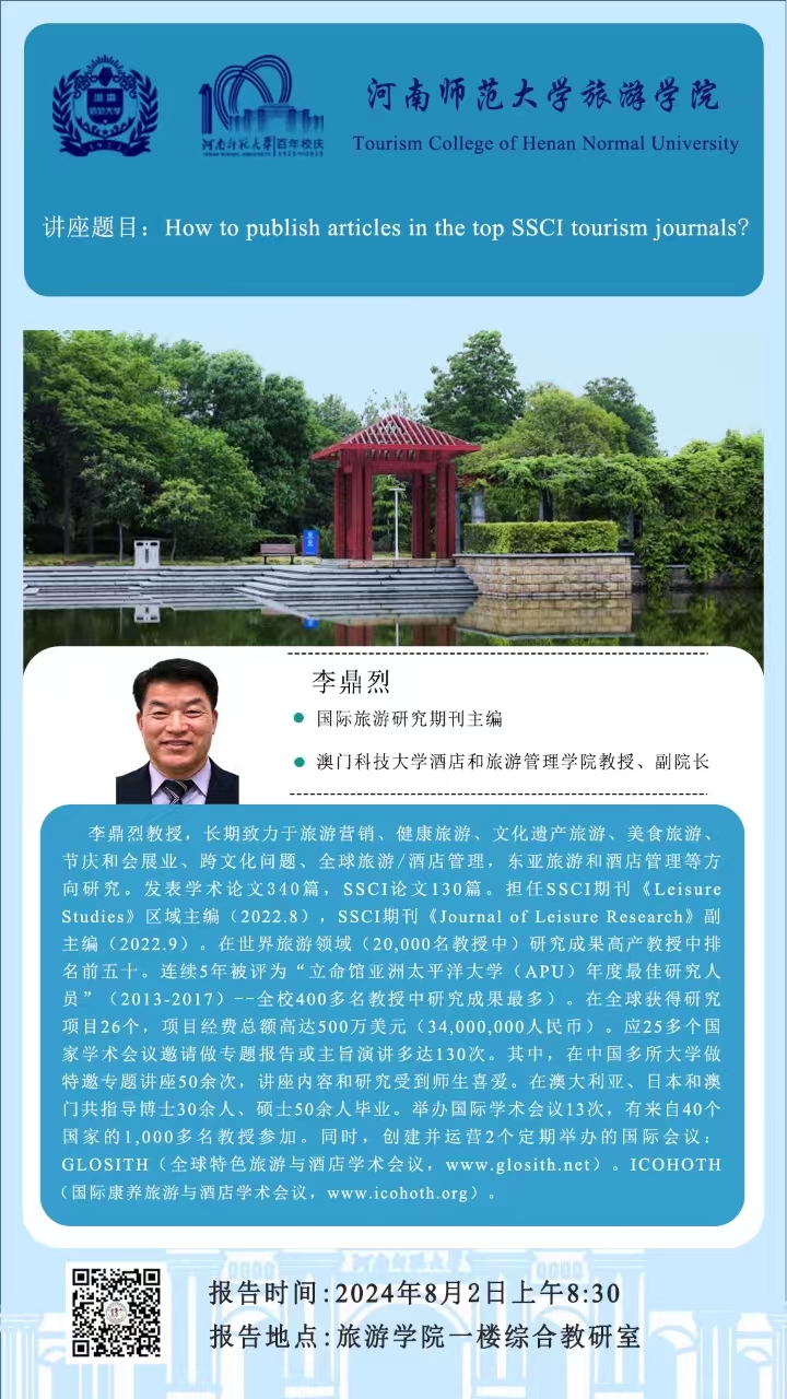 澳门科技大学酒店和旅游管理学院李鼎烈教授将应邀做客高端专家行知讲坛