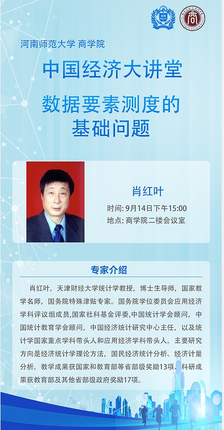 天津财经大学统计学肖红叶教授将应邀做客中国经济大讲堂