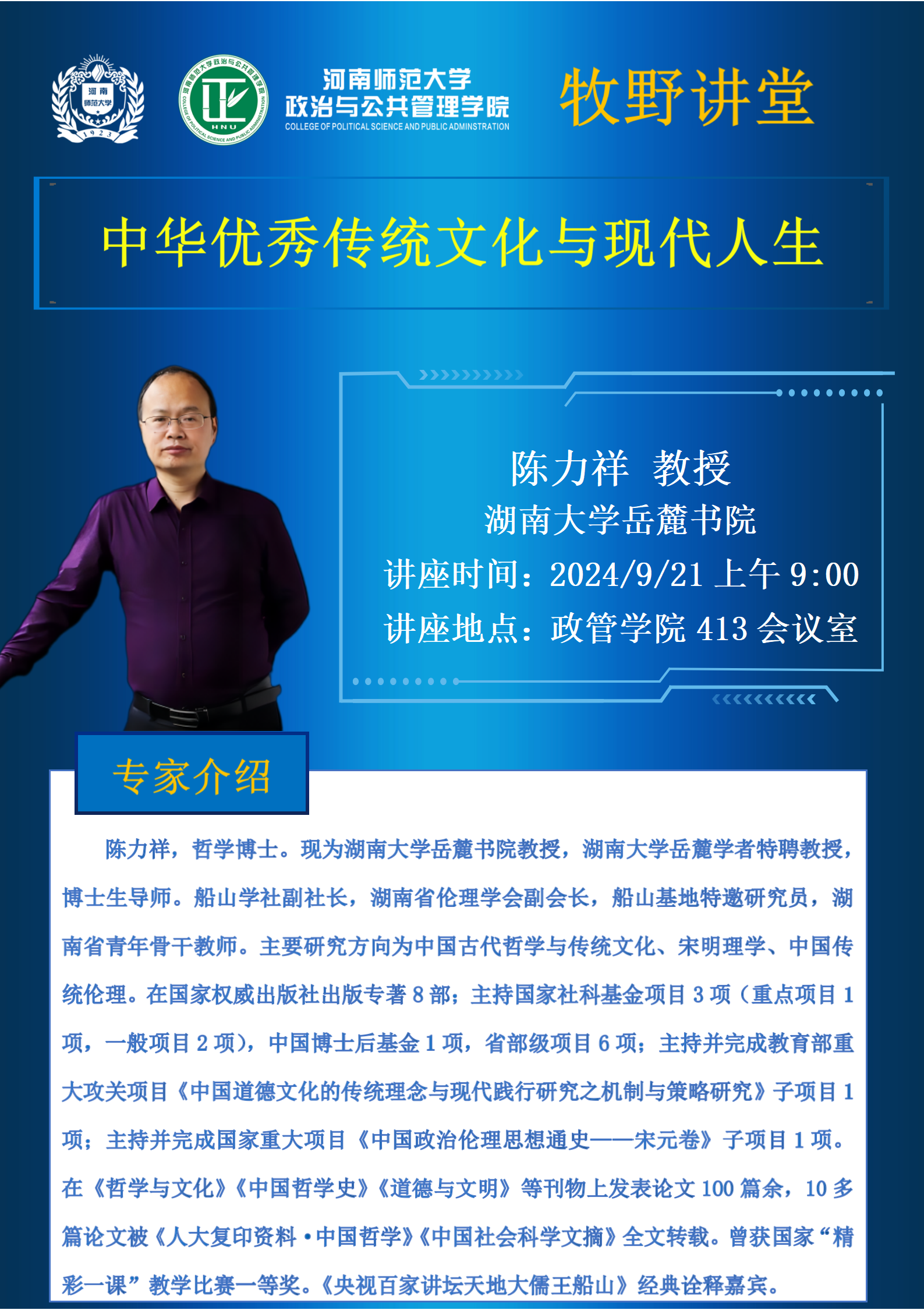 湖南大学岳麓书院陈力祥教授将应邀做客牧野讲堂