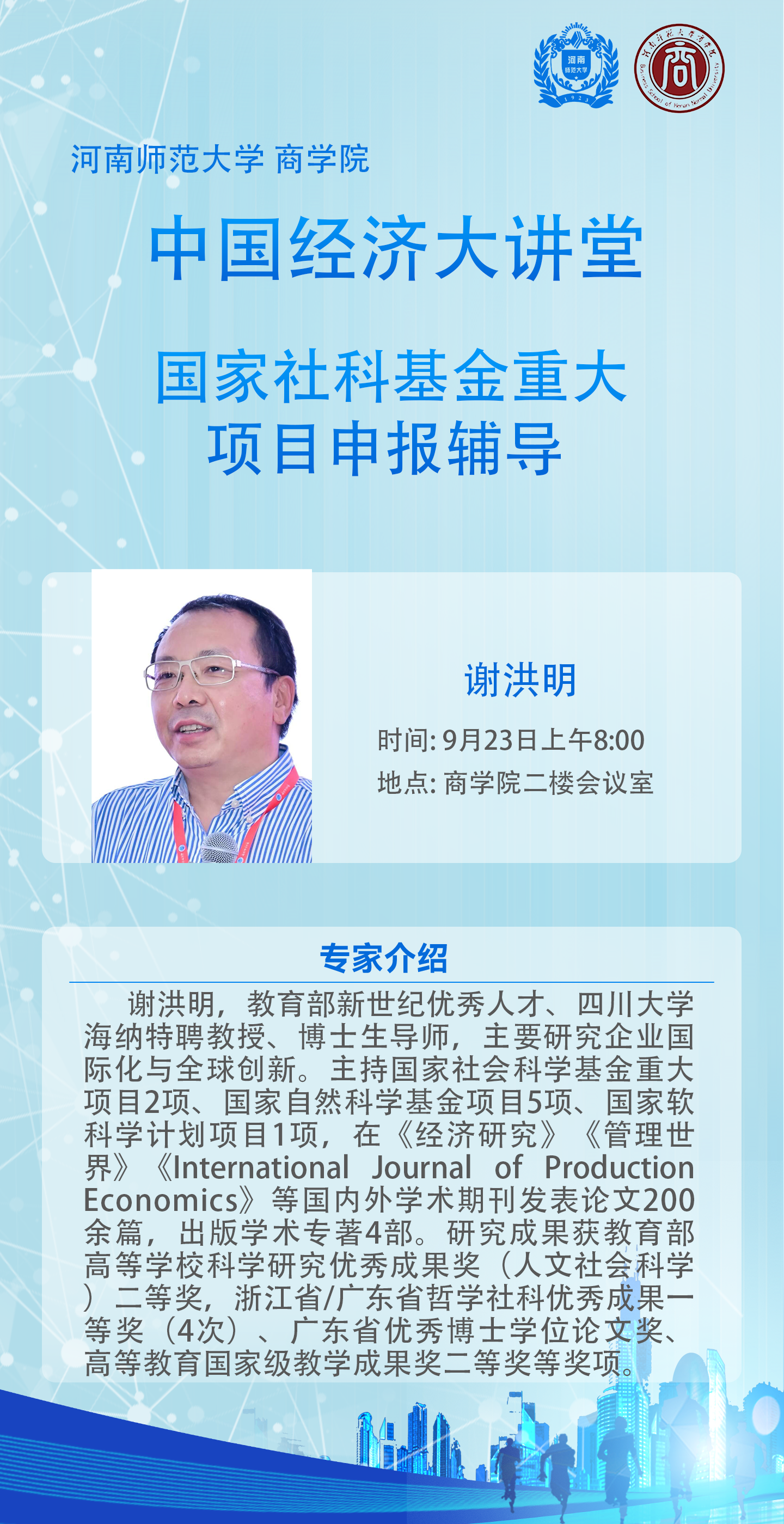 四川大学谢洪明教授将应邀做客“中国经济大讲堂”