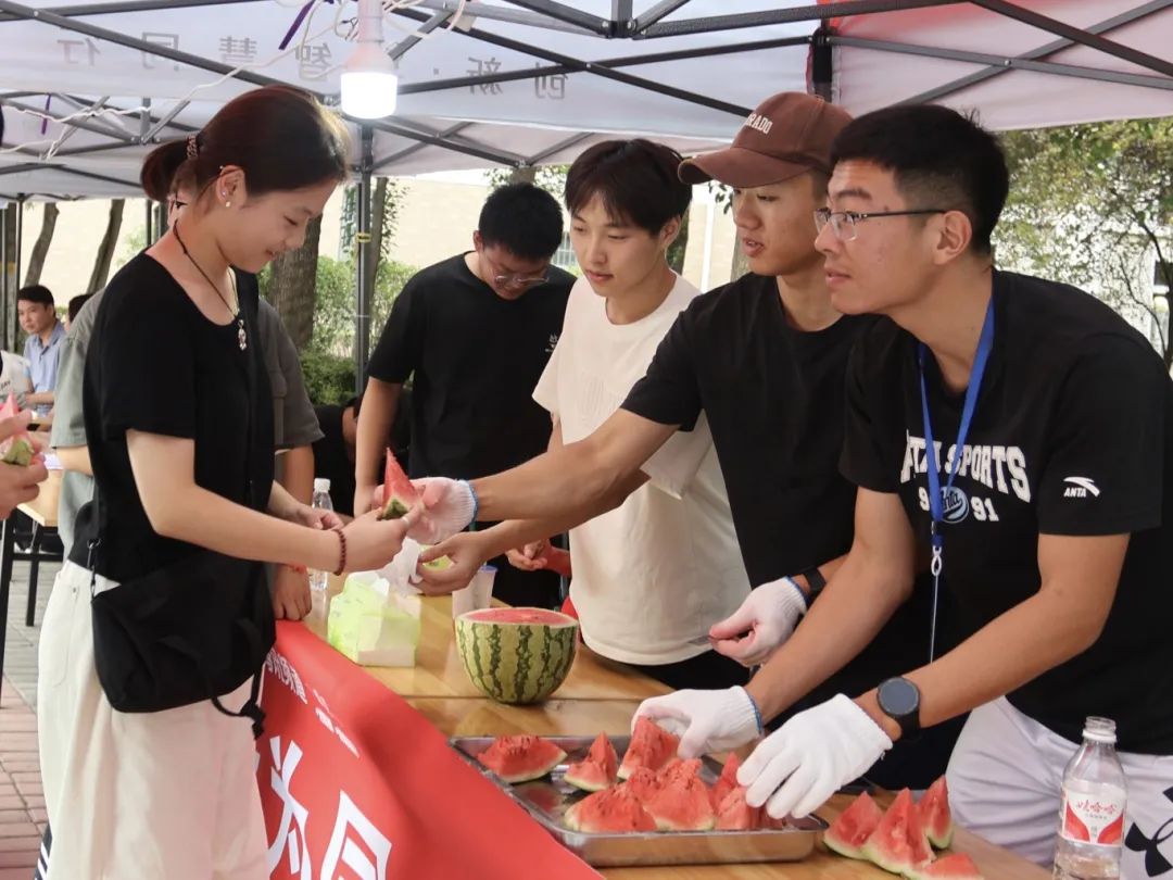 “来来来,大家都来这里拿块儿西瓜降降温。”炎热的午间,和温度一同“燃”起来的还有志愿者们迎接好、服务好新生的那颗炽热的心。“学校考虑到天气比较热,提前给我们准备西瓜,真的又解渴又清凉”,法学院2024级贾卓霖和家长惊喜道,“刚刚搬完行李路过这里,这块西瓜来的太及时了。”不仅这些小举措让人感到贴心,学校还有许多迎新措施都实打实地将这二字体现得淋漓尽致。