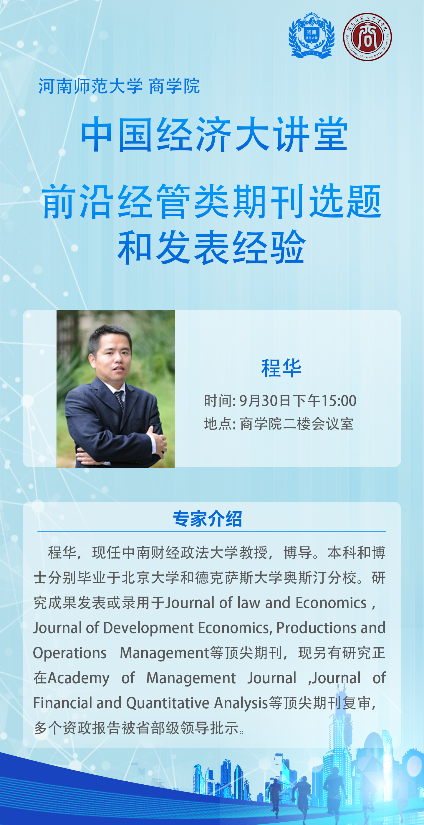 中南财经政法大学程华教授将应邀做客“中国经济大讲堂”