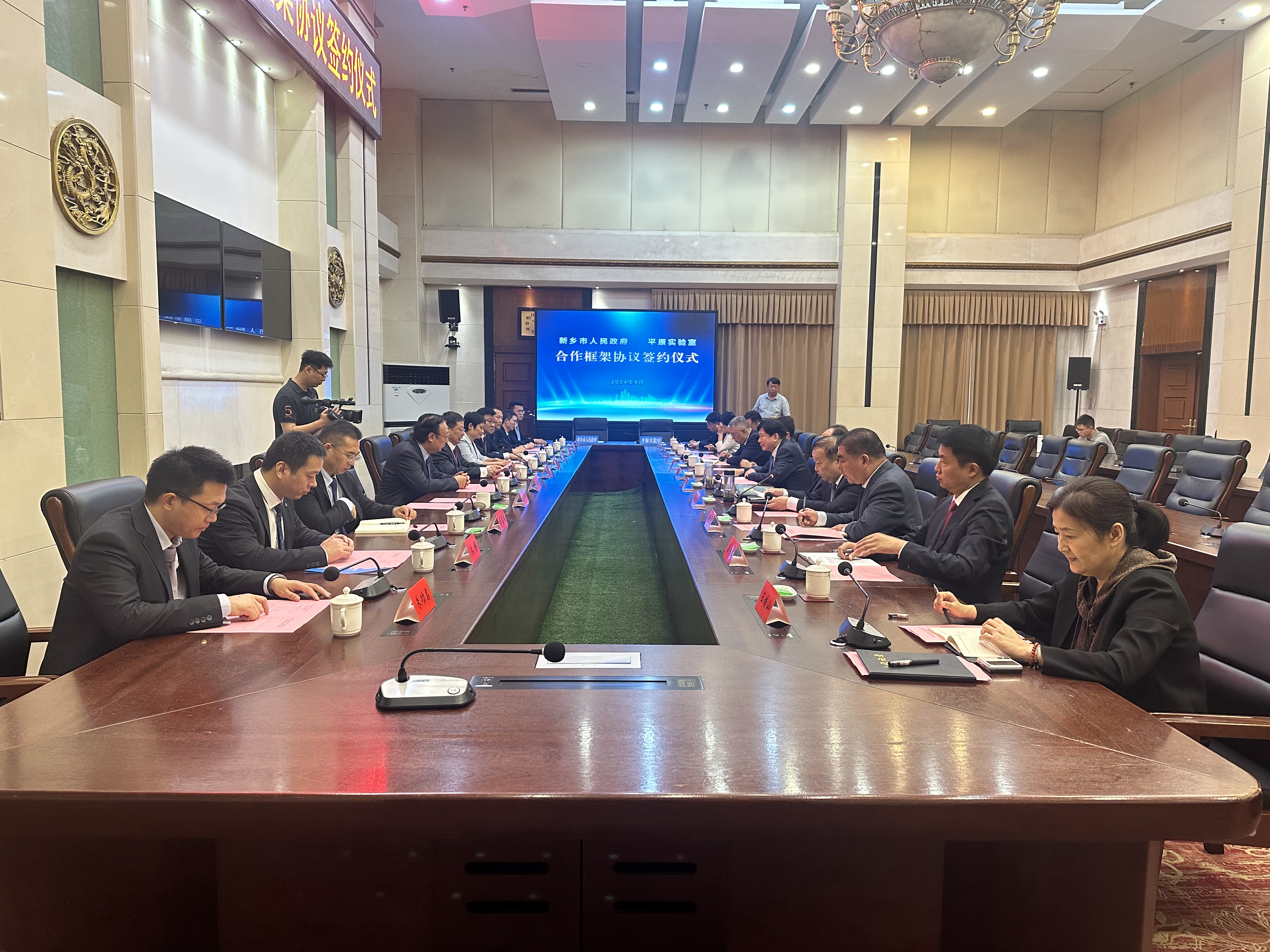 在各方与会人员的共同见证下,平原实验室主任常俊标与新乡市市长魏建平签署了合作框架协议。