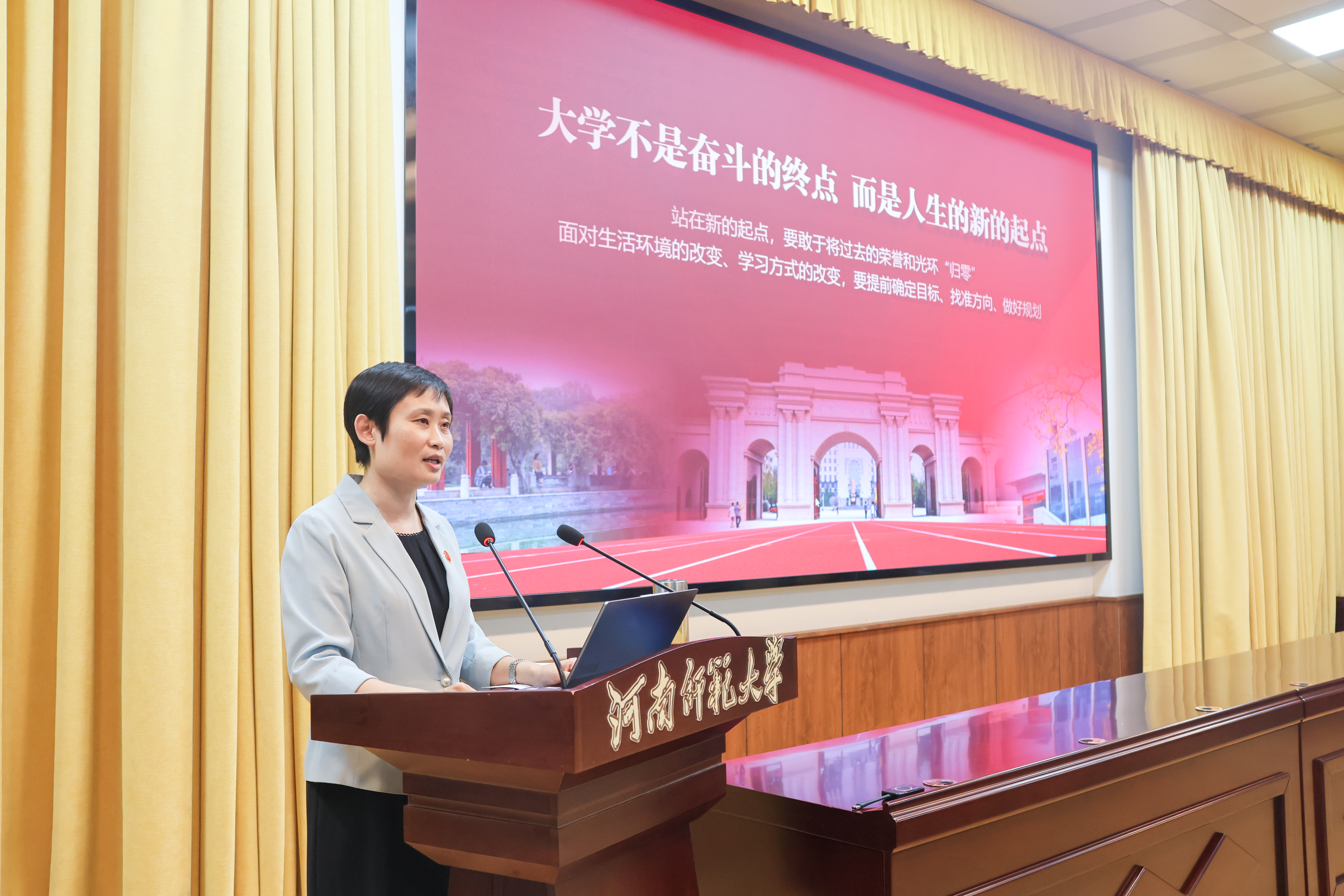 冯淑霞以“找准人生坐标 书写青春答卷”为主题,立足百年未有之大变局,从时间坐标、空间坐标、人生坐标三个维度,全面解读了我们所处的时代、我们共在的学校以及同学们所处的人生阶段,给新生上了一堂生动的思想政治理论课。