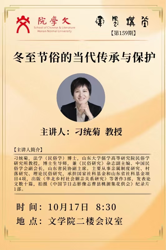 山东大学刁统菊教授将应邀做客“卫风讲堂”