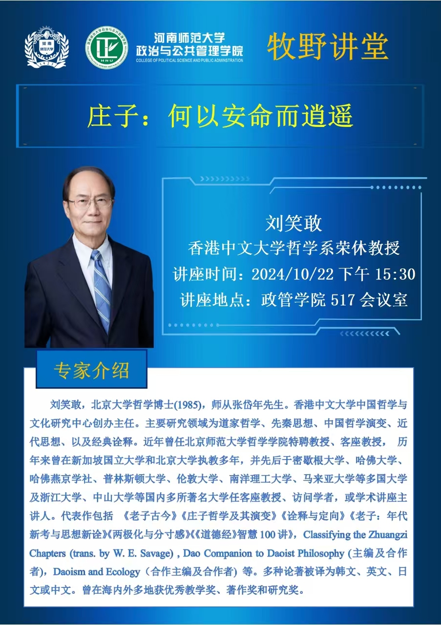 香港中文大学哲学系刘笑敢教授将应邀做客牧野讲堂