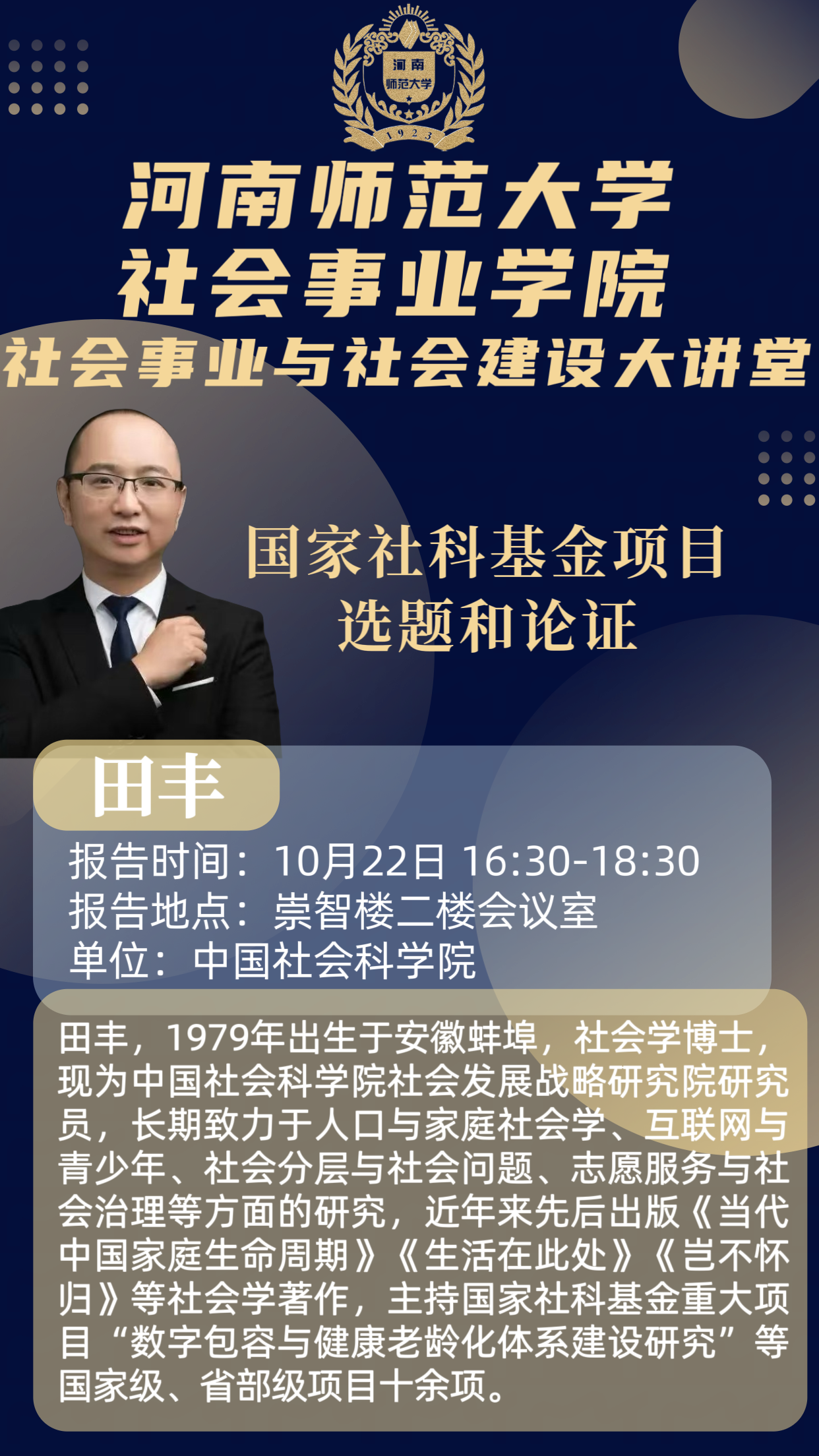 中国社会科学院田丰研究员将应邀做客“社会事业与社会建设大讲堂”