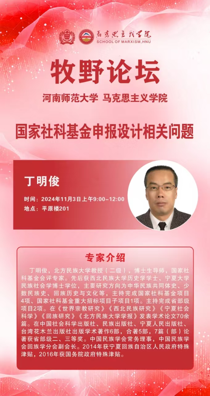 北方民族大学丁明俊教授将应邀做客牧野论坛