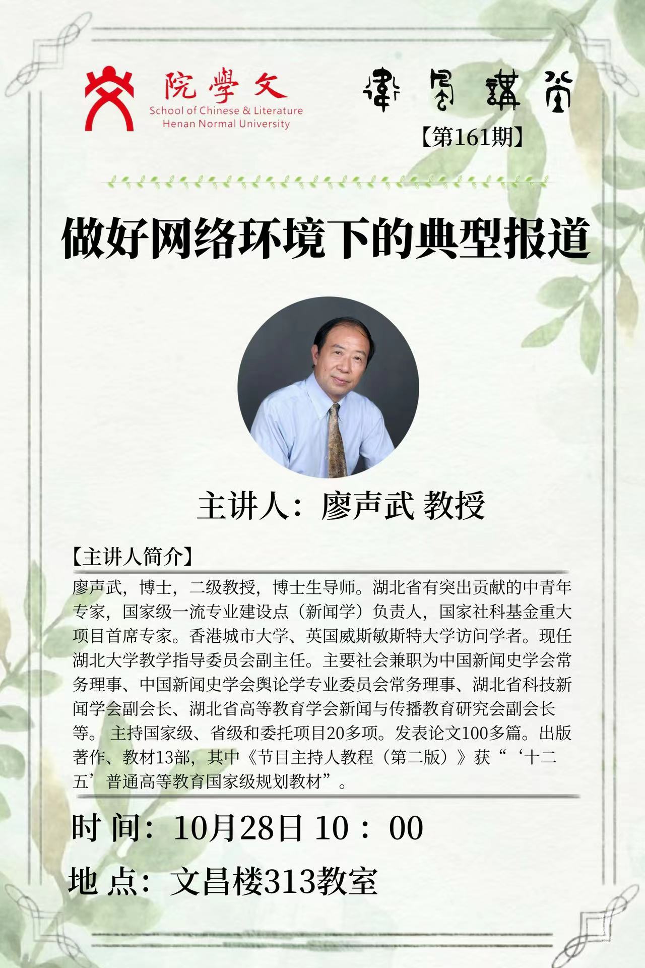 湖北大学廖声武教授将应邀做客“卫风讲堂”