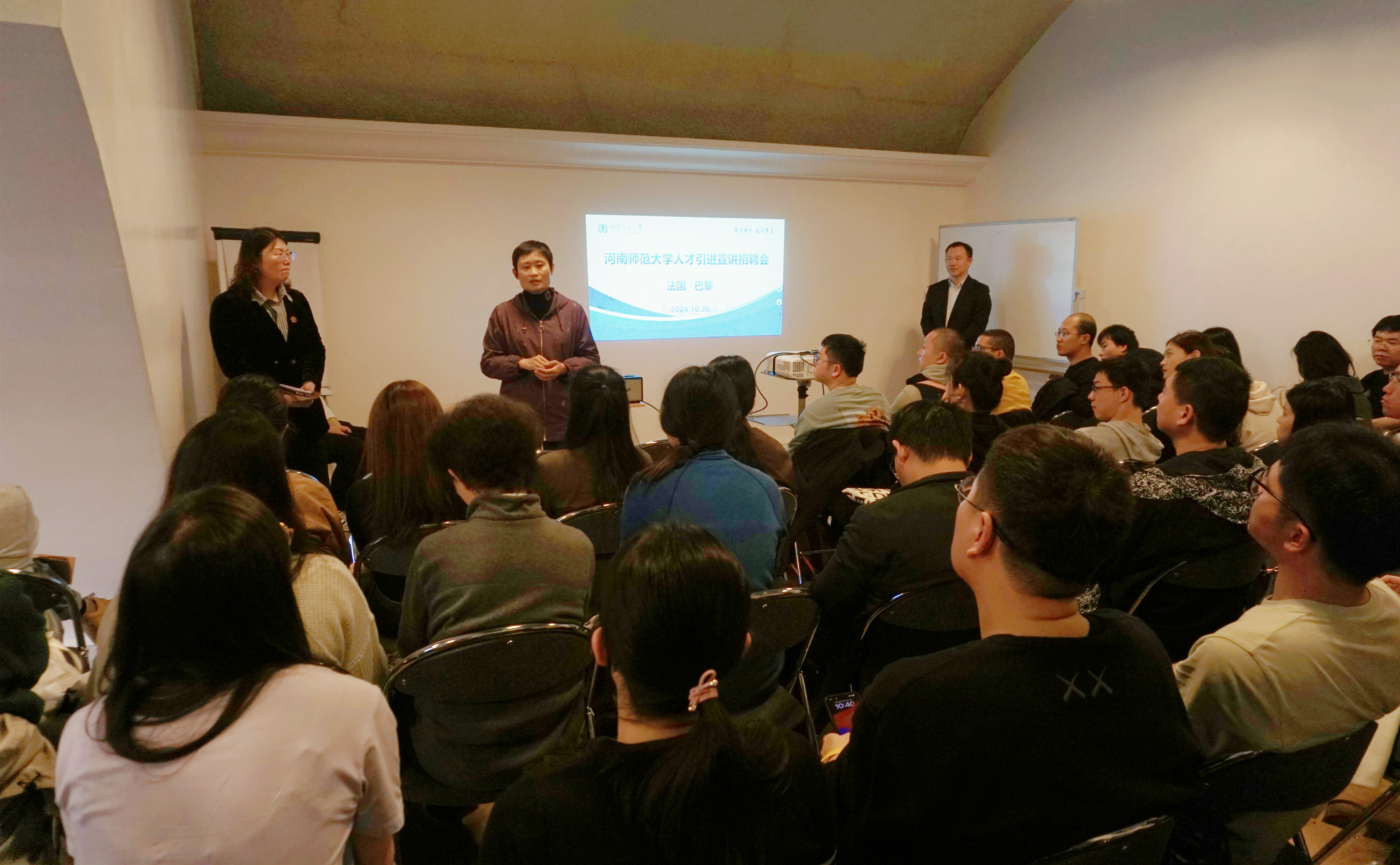 访问期间,我校在法国巴黎举办在法留学生人才宣讲招聘会,来自巴黎萨克雷大学、巴黎文理大学、巴黎西岱大学等高水平大学的80余名青年人才参加了宣讲招聘活动。冯淑霞介绍了学校的总体情况,相关职能部门、学院负责人向在法留学生介绍我校引才及招聘政策,并就青年人才关注的问题进行了深入交流。