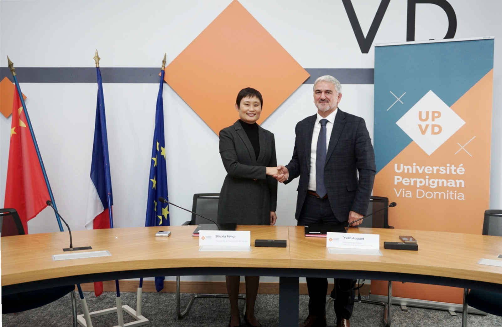 10月21日至26日,校党委书记、校长冯淑霞率团赴欧洲出访法国佩皮尼昂大学、法国诺曼底勒阿弗尔大学、比利时布鲁塞尔自由大学等,就深化合作办学、人才培养、科研合作和师生交流等事宜,达成多项合作共识并签署相关合作协议。相关单位负责同志陪同出访。