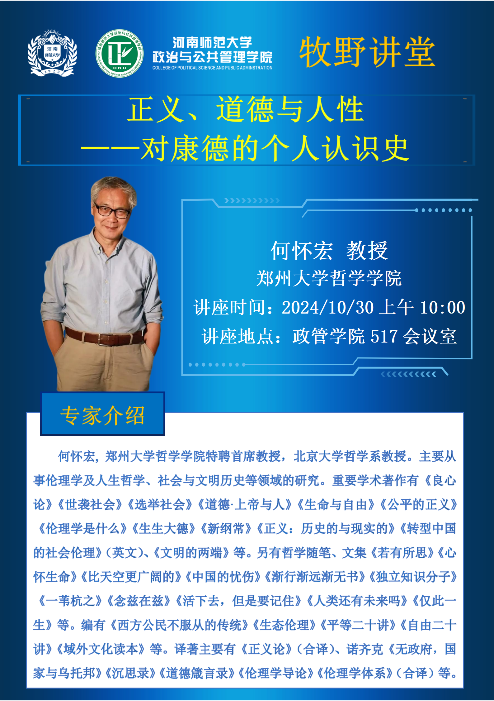 郑州大学何怀宏教授将应邀做客“牧野讲堂”