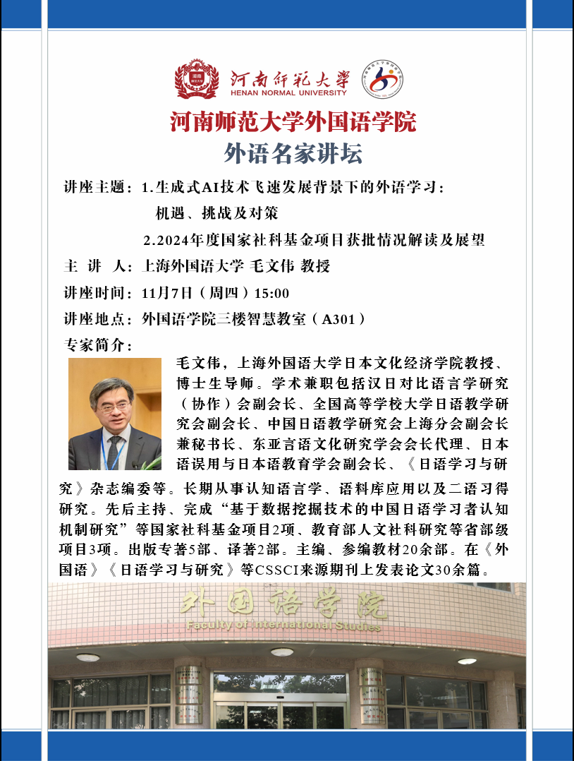 上海外国语大学毛文伟教授将应邀做客外语名家讲坛