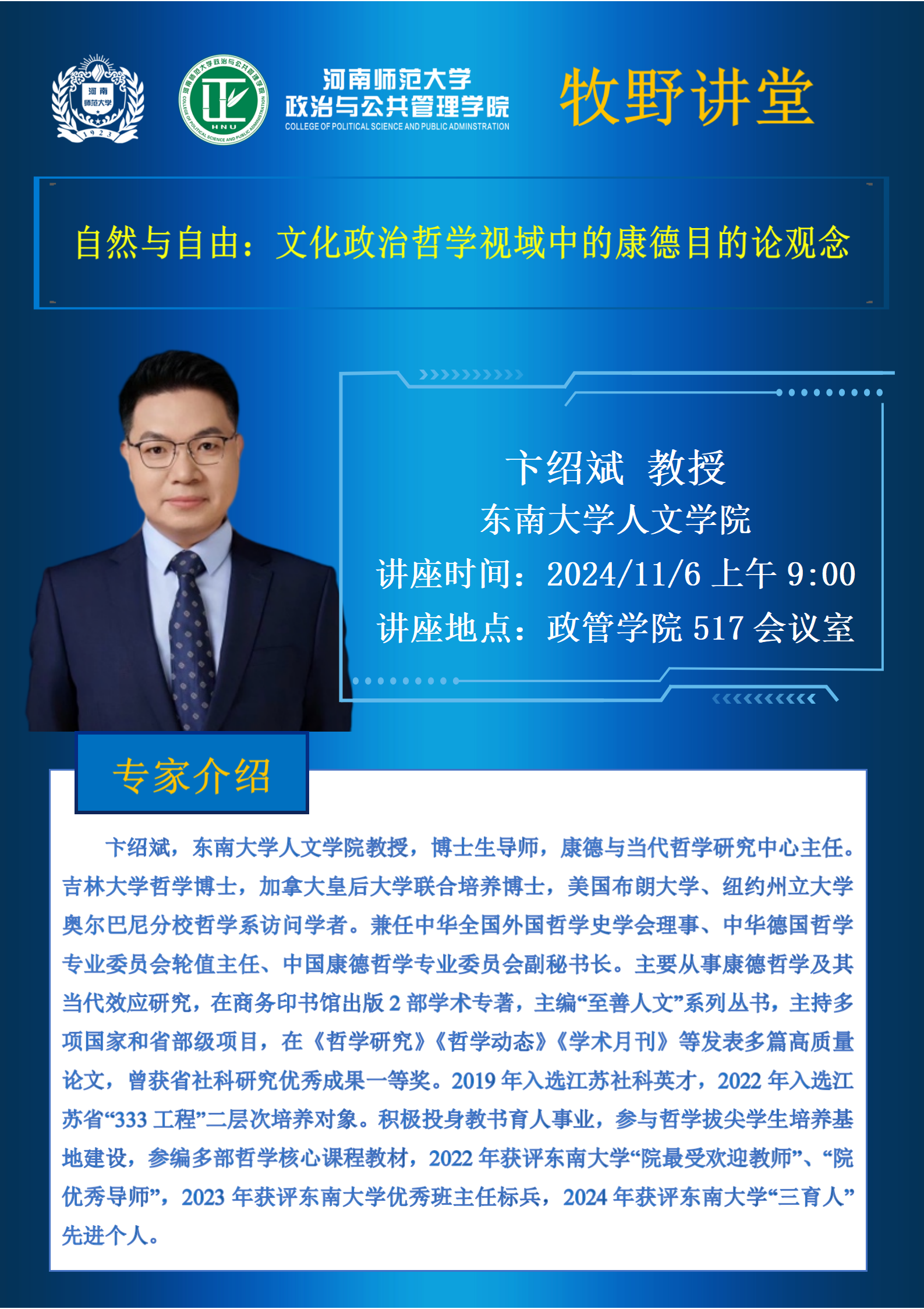 东南大学人文学院卞绍斌教授将应邀做客牧野讲堂