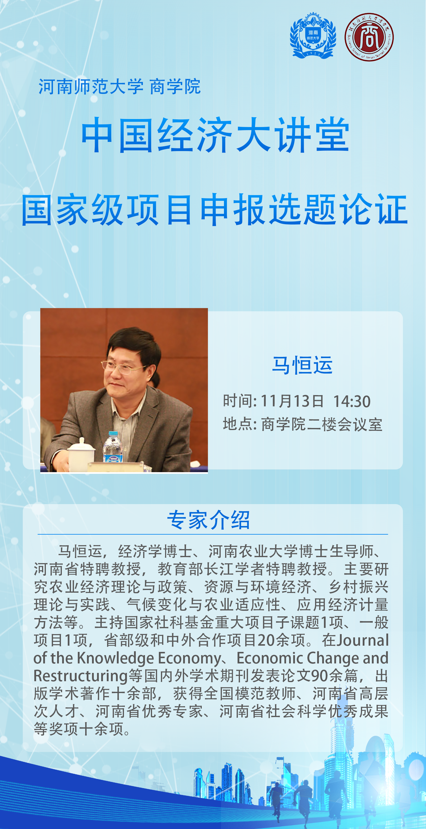 河南农业大学马恒运教授将应邀做客“中国经济大讲堂”