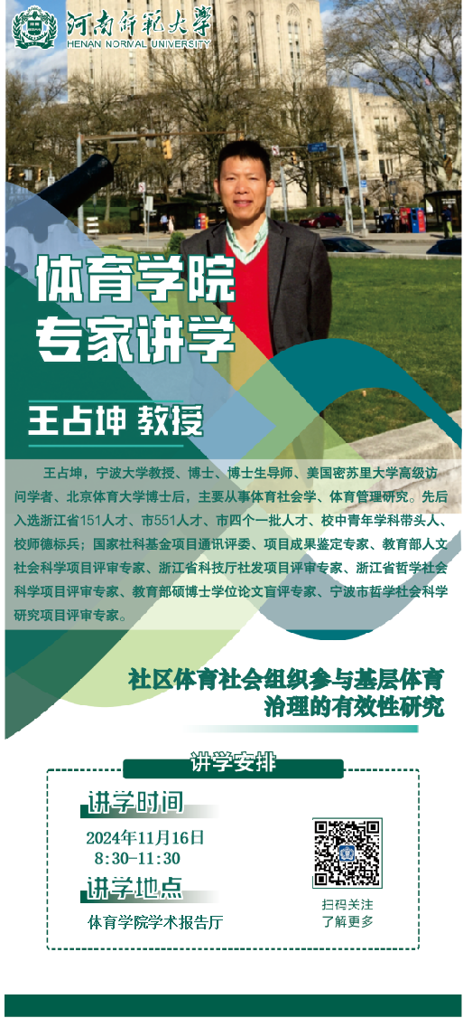 宁波大学王占坤教授将应邀做客体育博雅论坛