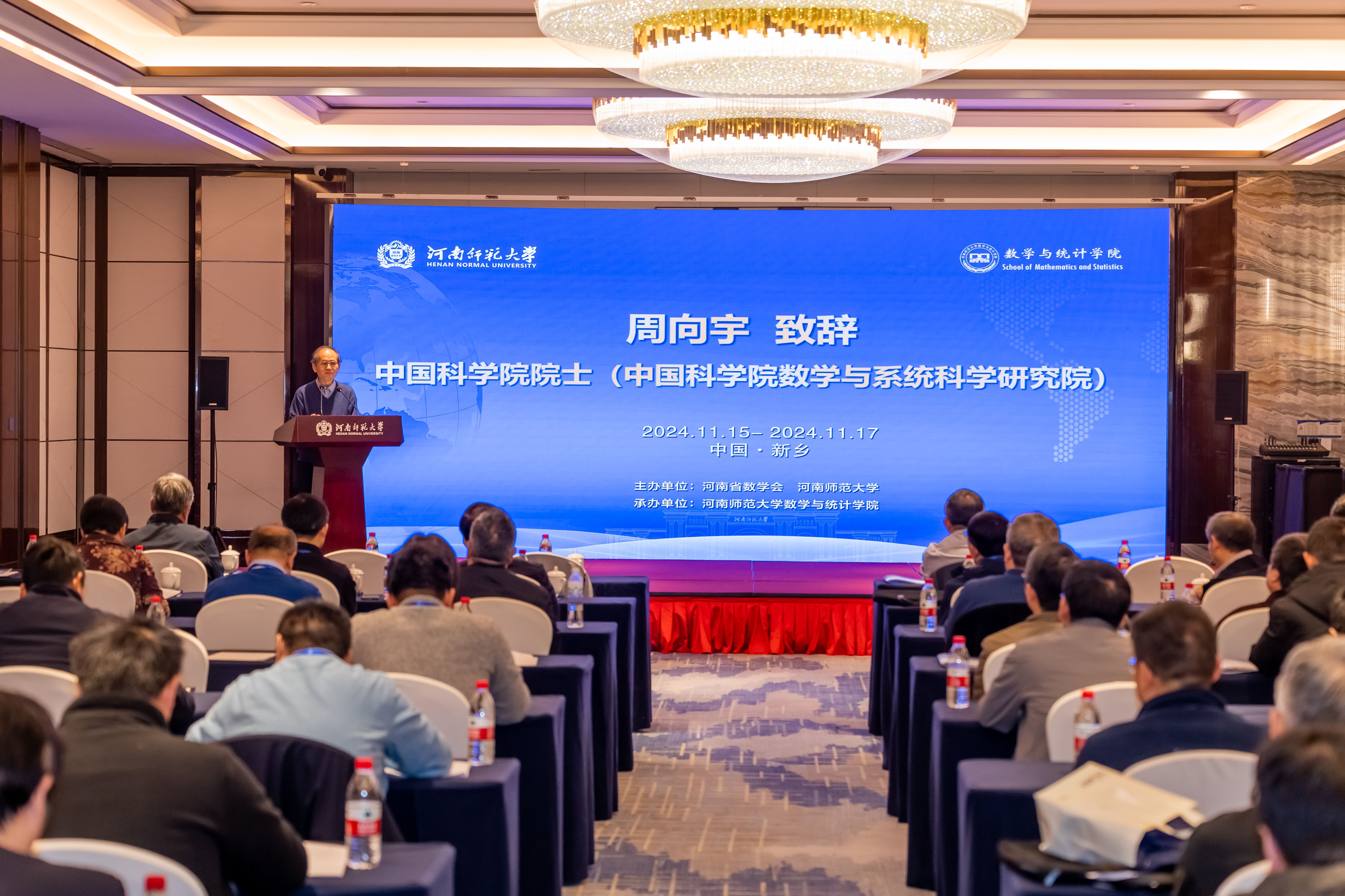 11月16日,由河南省数学会和我校联合主办的2024 年多复变与复几何会议召开。南开大学张伟平院士,中国科学院数学与系统科学研究院周向宇院士,重庆理工大学刘克峰教授,河南省数学会理事长卢克平教授,校党委书记、校长冯淑霞教授出席开幕式,来自中国科学院、清华大学、北京大学、复旦大学、南开大学、中国科学技术大学、厦门大学、北京师范大学等40所高校80余位专家学者,数学与统计学院党政领导、师生代表共150余人参加开幕式。开幕式由校党委常委、副校长苗雨教授主持。