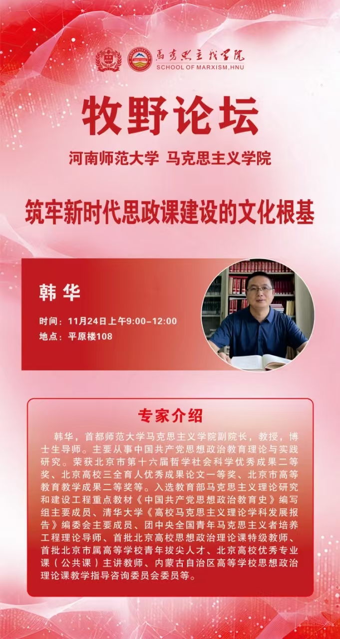 首都师范大学马克思主义学院副院长韩华教授将应邀做客牧野论坛