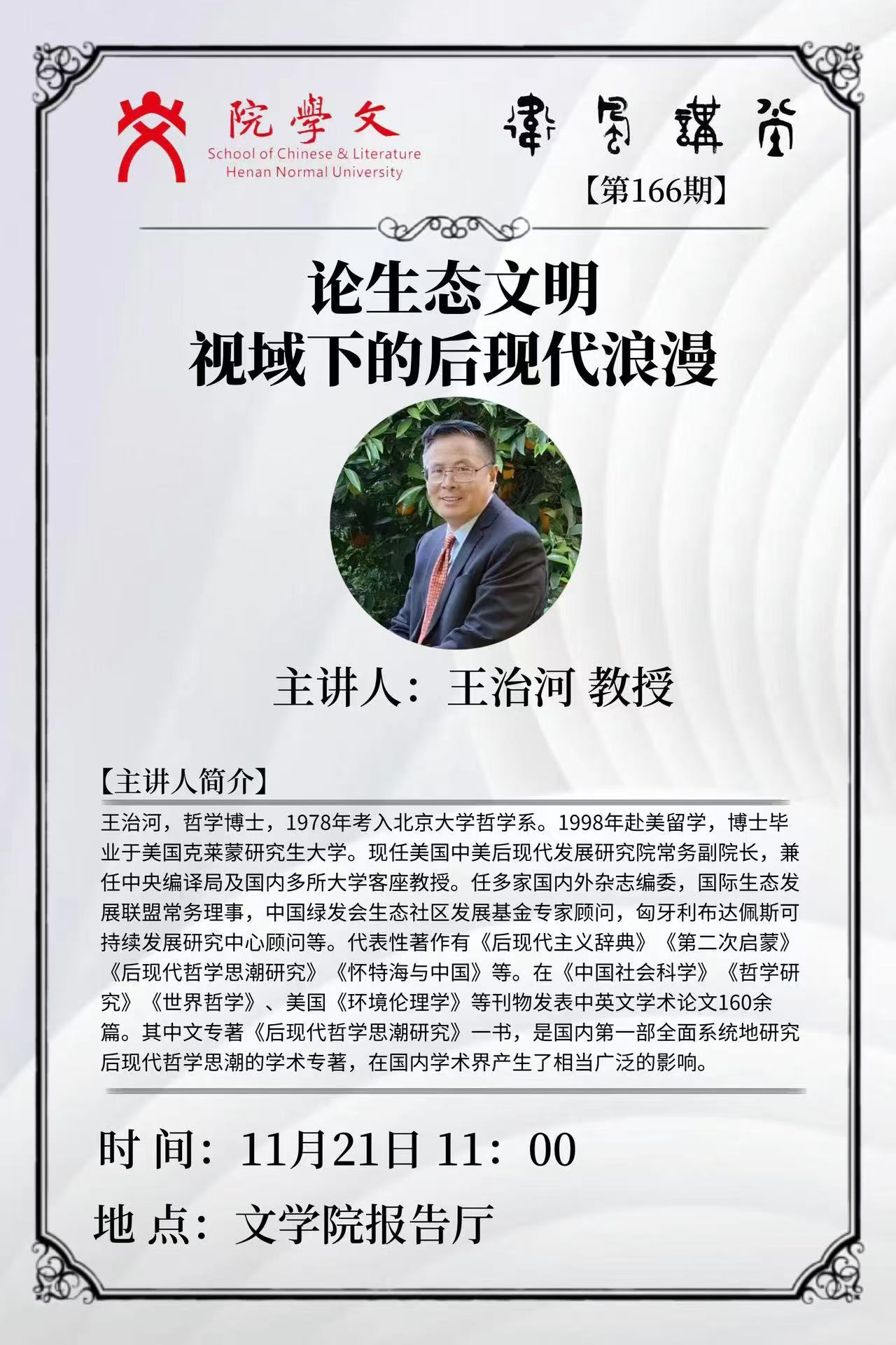 美国中美后现代发展研究院王治河教授将应邀做客“卫风讲堂”