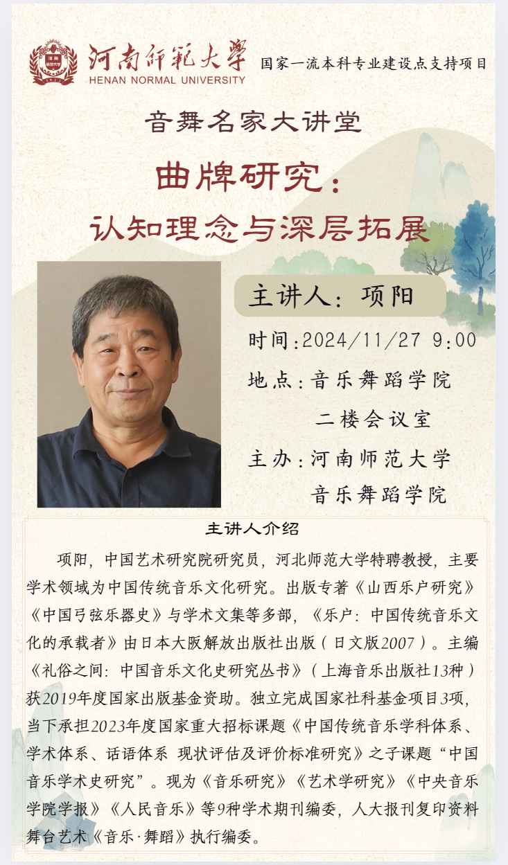 中国艺术研究院项阳研究员将应邀做客音舞名家大讲堂