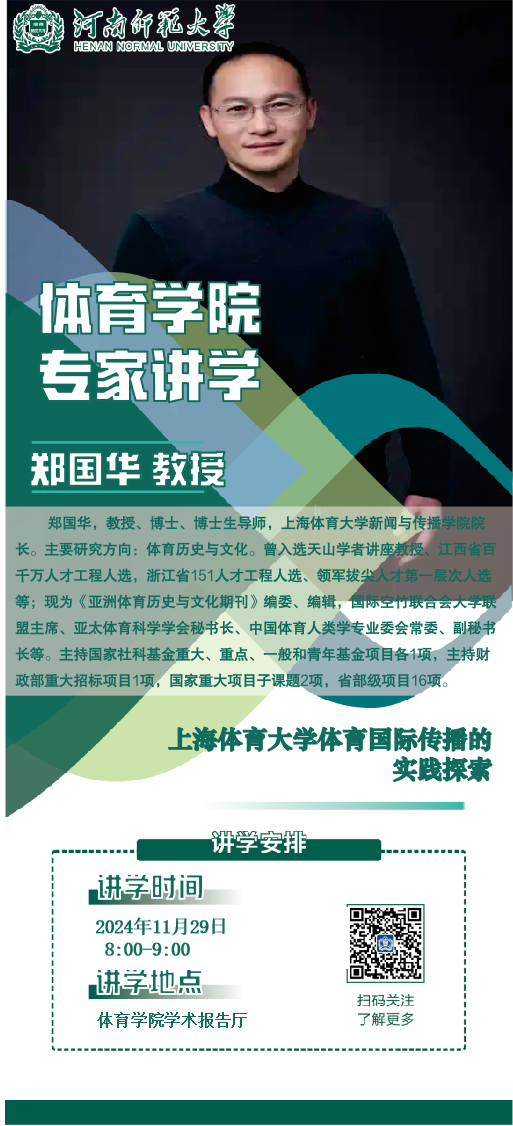 上海体育大学新闻与传播学院郑国华院长将应邀做客体育博雅论坛