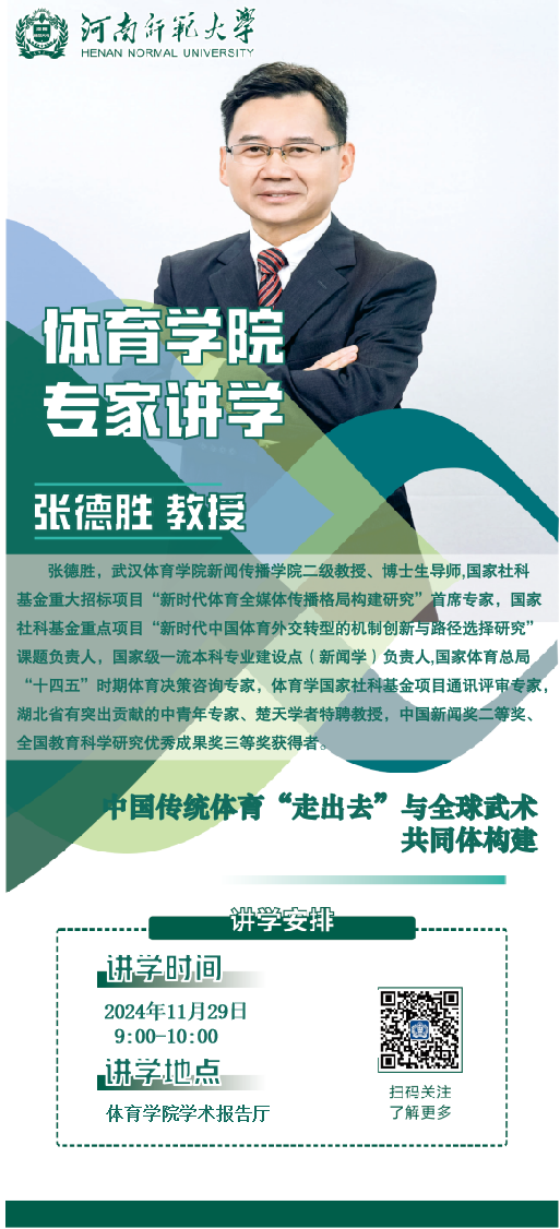 武汉体育学院新闻传播学院张德胜教授将应邀做客体育博雅论坛