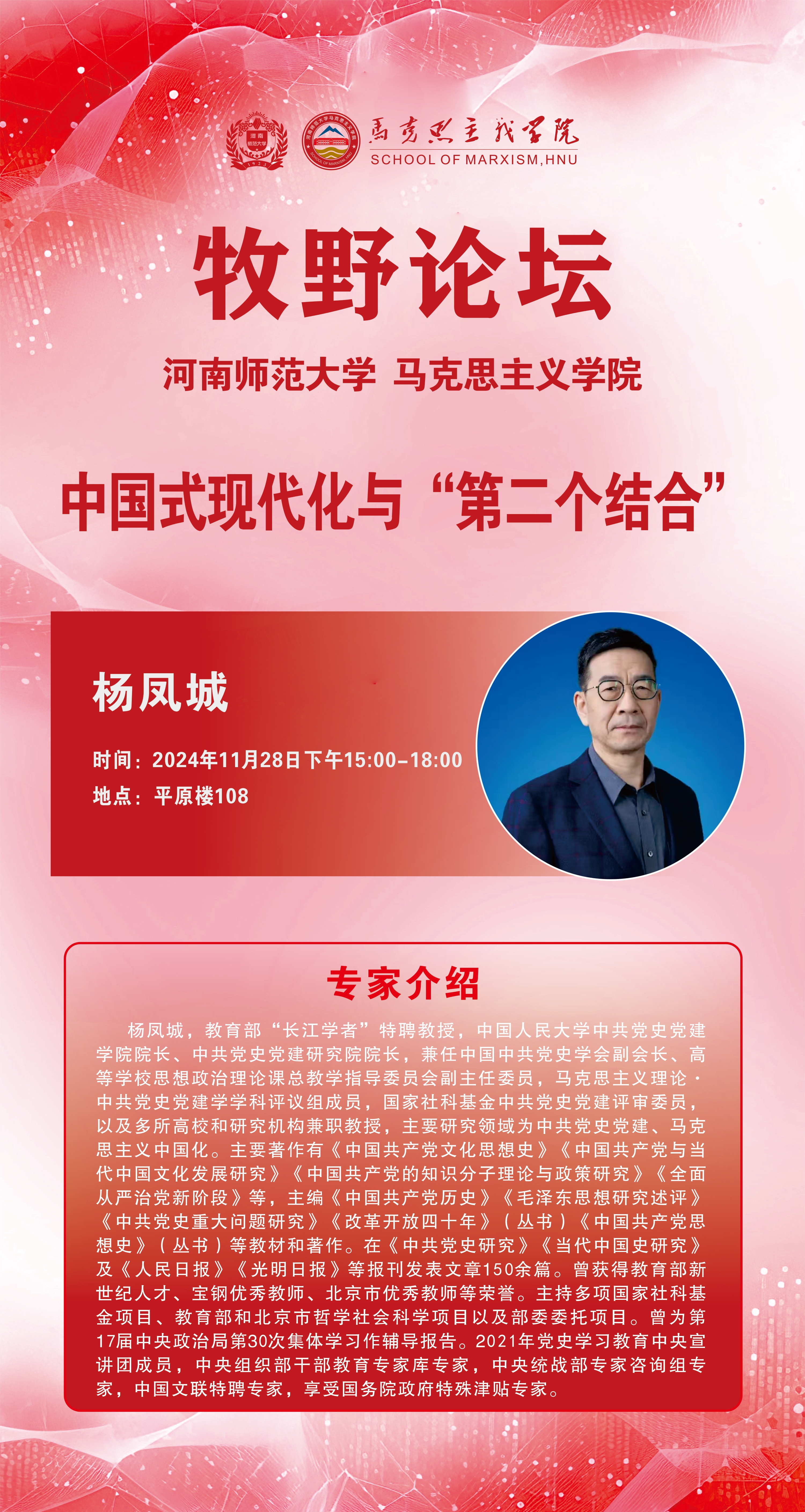 中国人民大学杨凤城教授将应邀做客“牧野论坛”